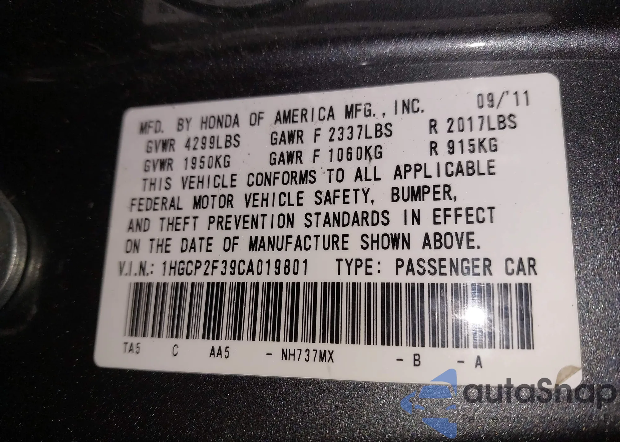 Samochód Honda Accord 2012 (VIN 1HGCP2F39CA019801) nie był wcześniej licytowany. Dokumenty są czyste, przebieg odpowiada lub jest niższy niż średnia rynku. Sprzedaje go firma ubezpieczeniowa – polecamy zakup. Dostawa do portu zajmie ok. 6–8 tygodni.