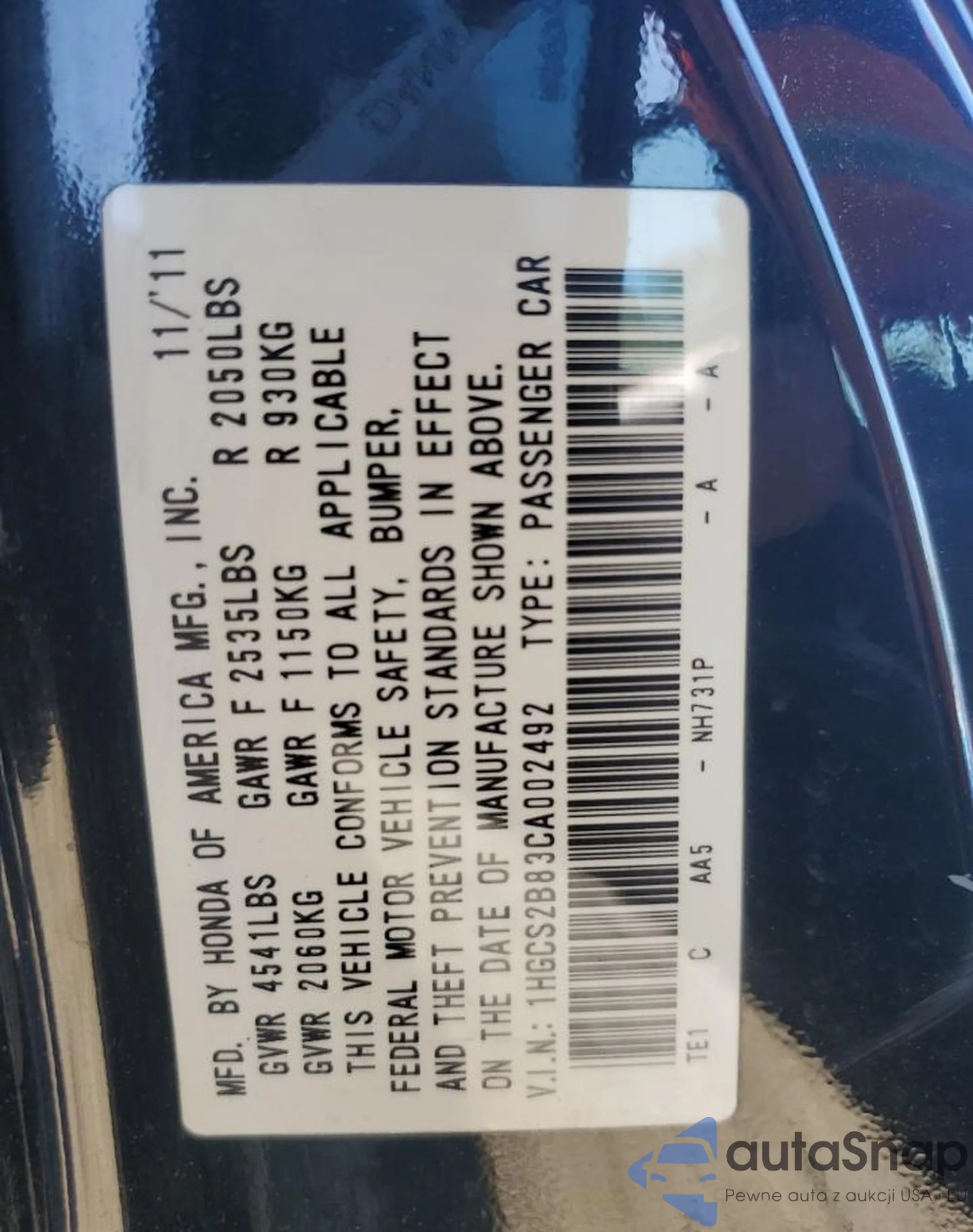 VIN: 1HGCS2B83CA002492