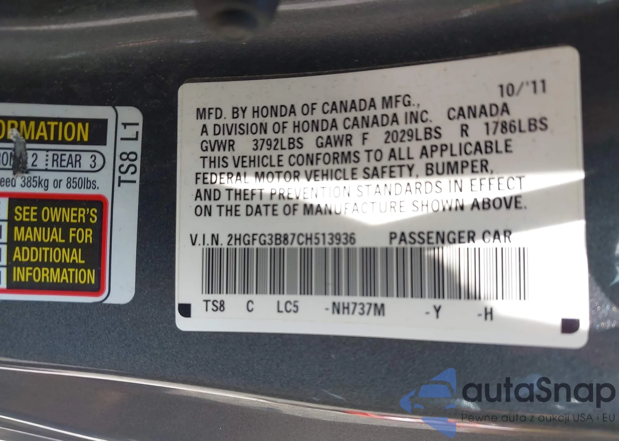 VIN: 2HGFG3B87CH513936