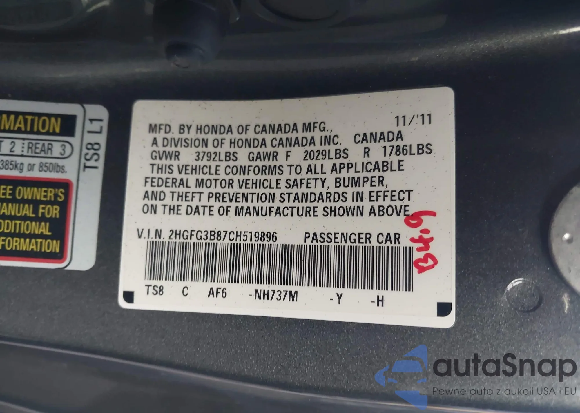 VIN: 2HGFG3B87CH519896