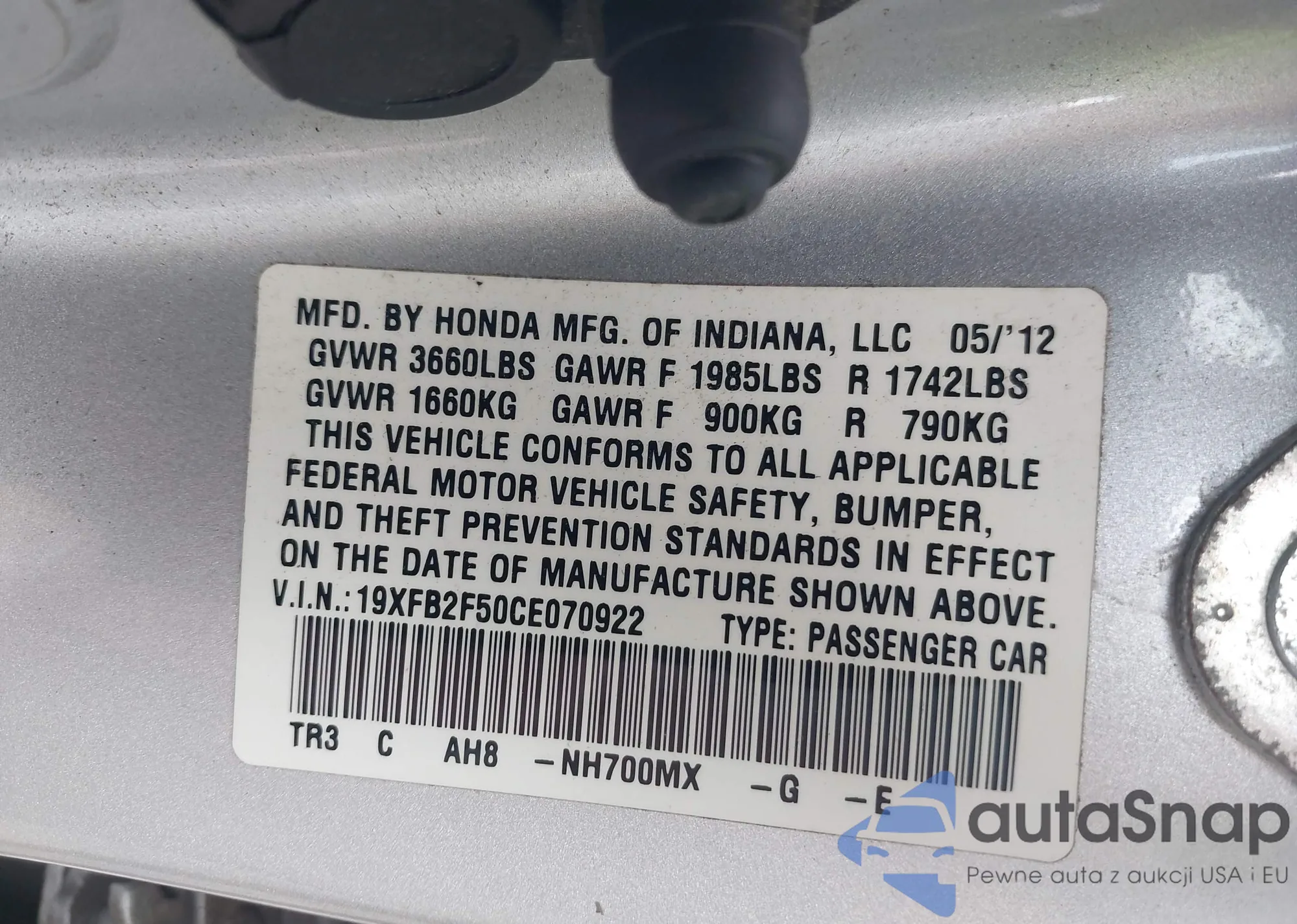 VIN: 19XFB2F50CE070922