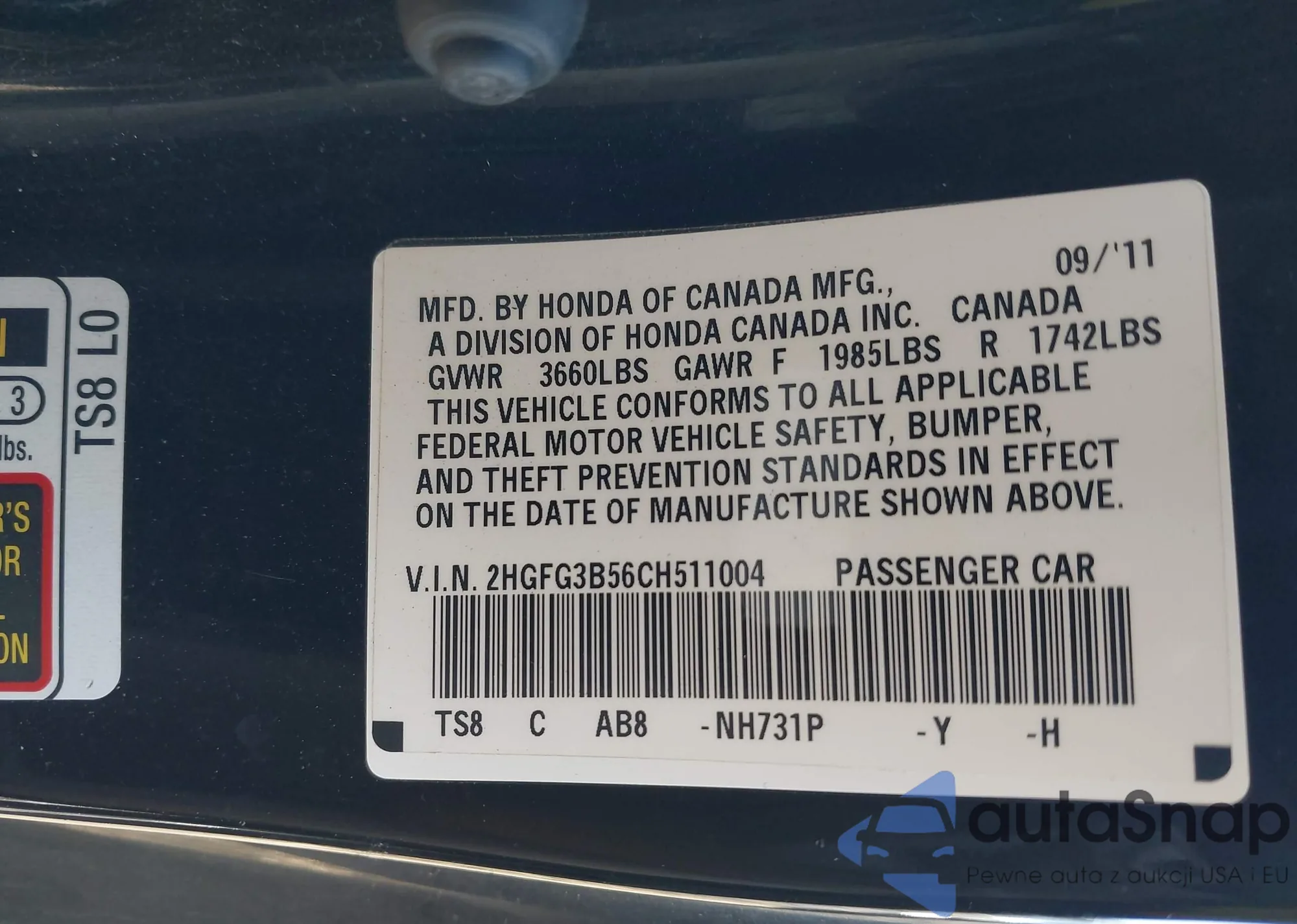 VIN: 2HGFG3B56CH511004