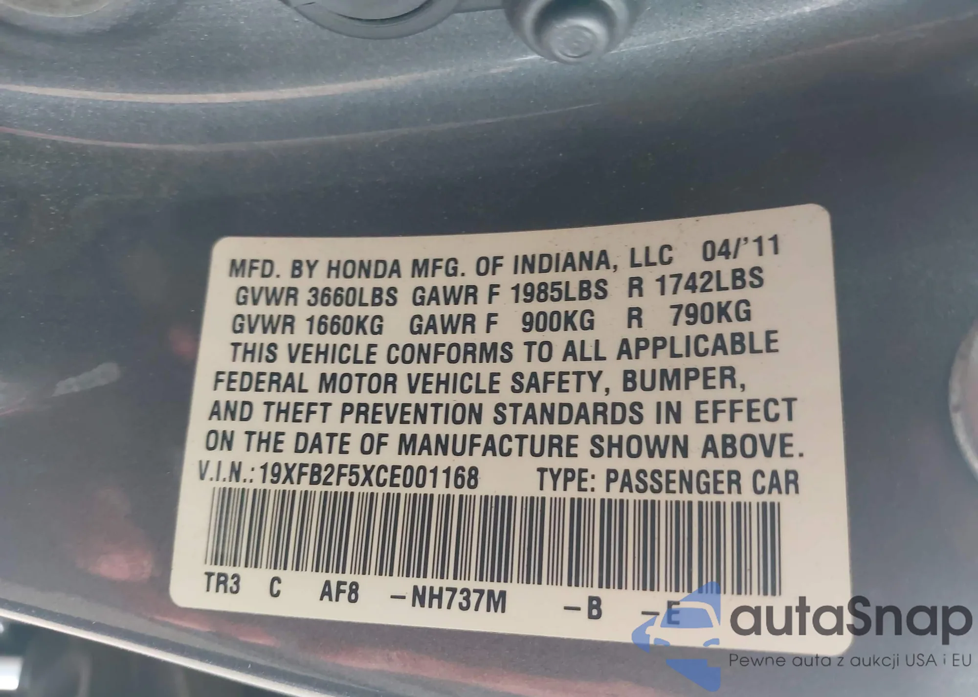 VIN: 19XFB2F5XCE001168