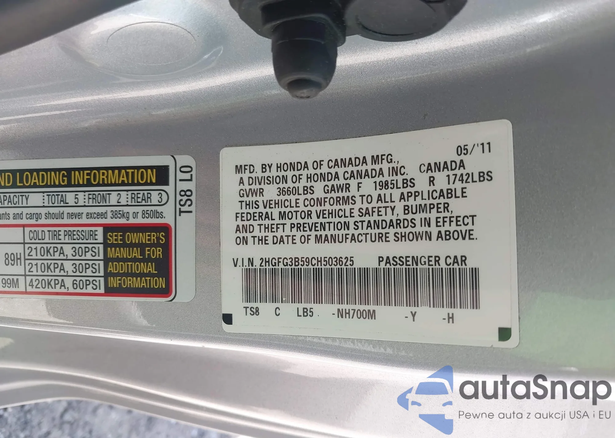 VIN: 2HGFG3B59CH503625