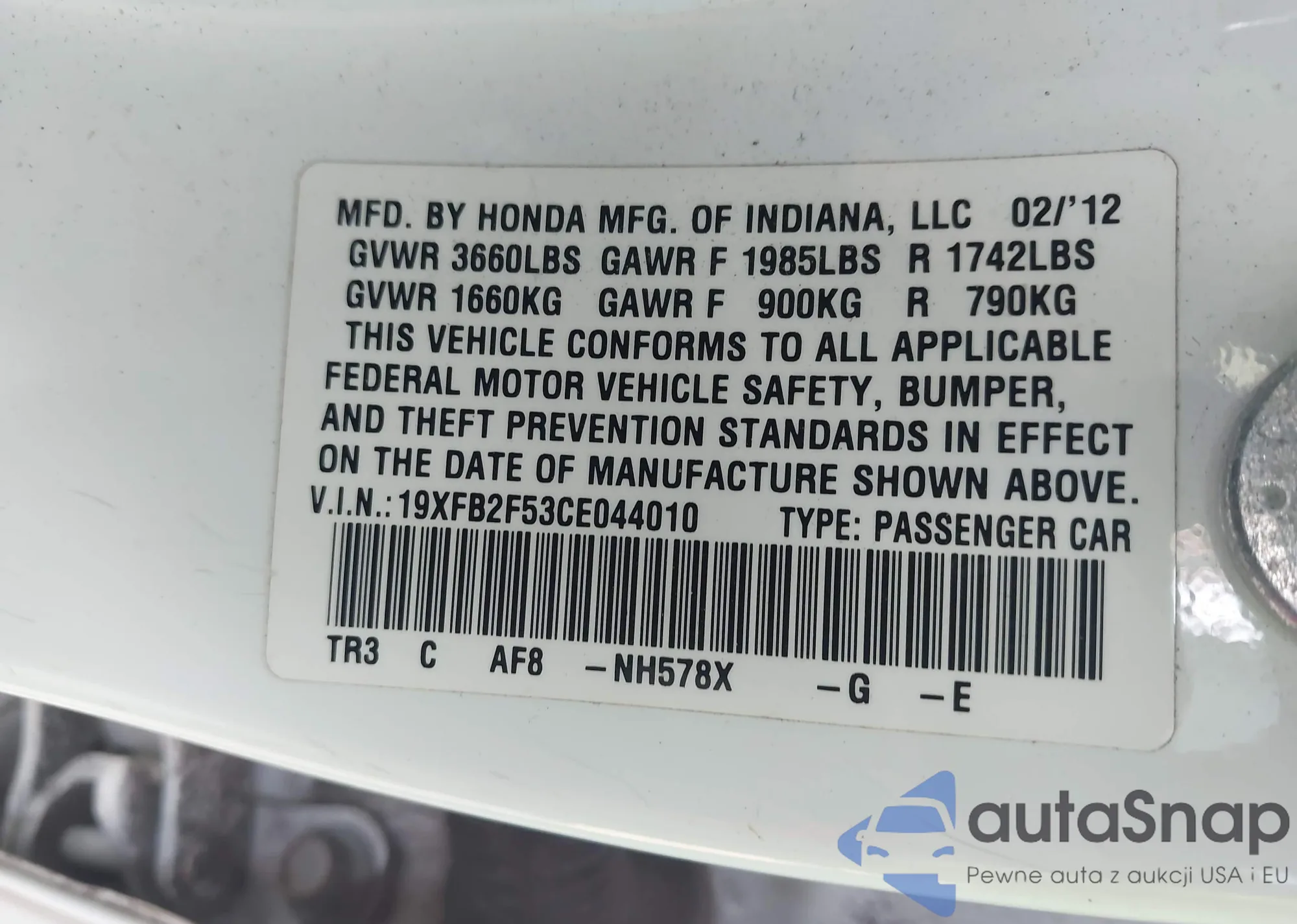 Samochód Honda Civic 2012 (VIN 19XFB2F53CE044010) nie był wcześniej licytowany. Dokumenty są czyste, przebieg odpowiada lub jest niższy niż średnia rynku. Sprzedaje go firma ubezpieczeniowa – polecamy zakup. Dostawa do portu zajmie ok. 6–8 tygodni.