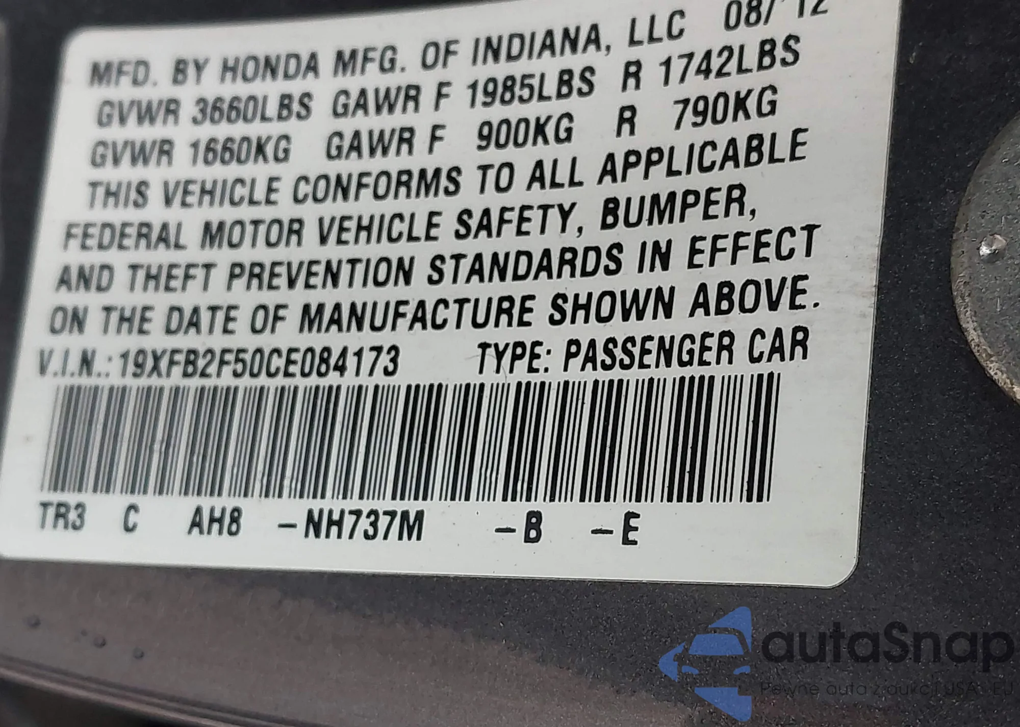 VIN: 19XFB2F50CE084173
