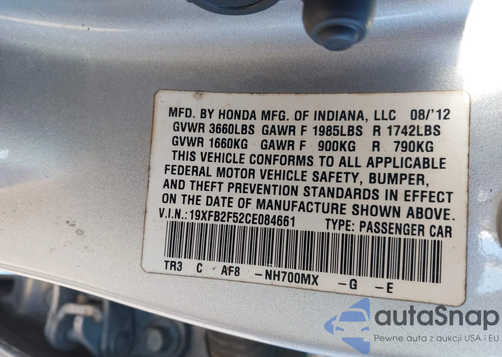VIN: 19XFB2F52CE084661