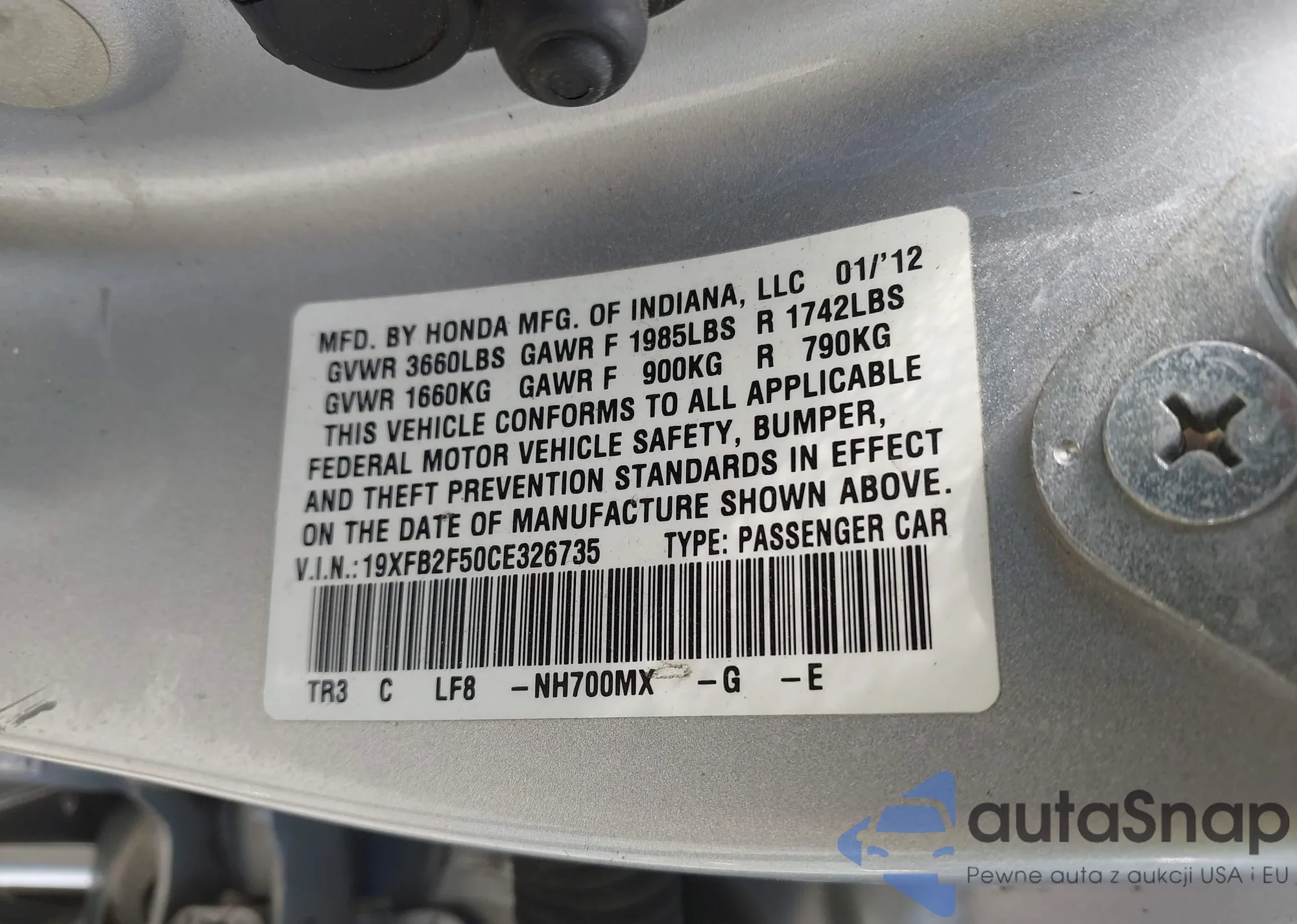 VIN: 19XFB2F50CE326735