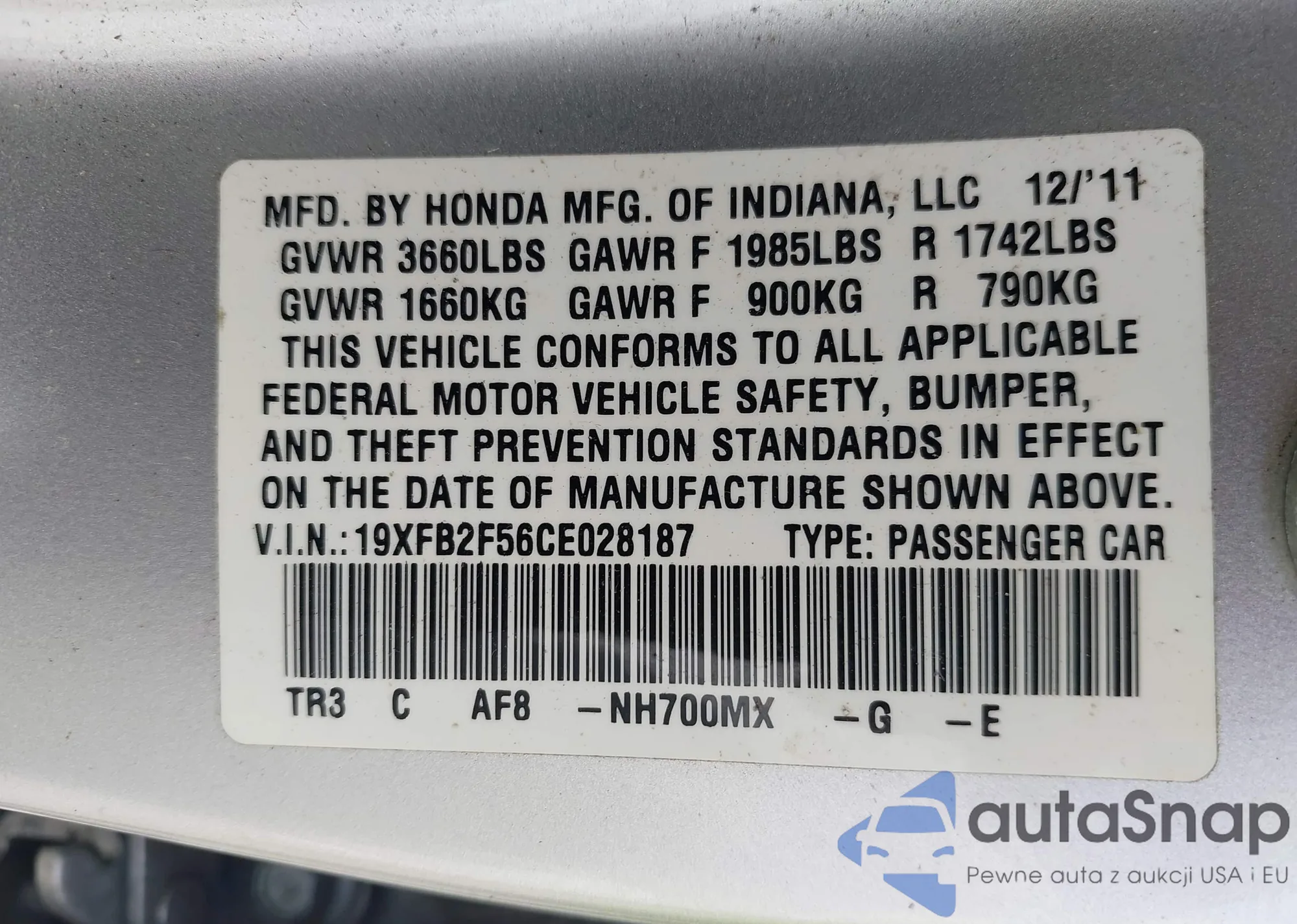 VIN: 19XFB2F56CE028187