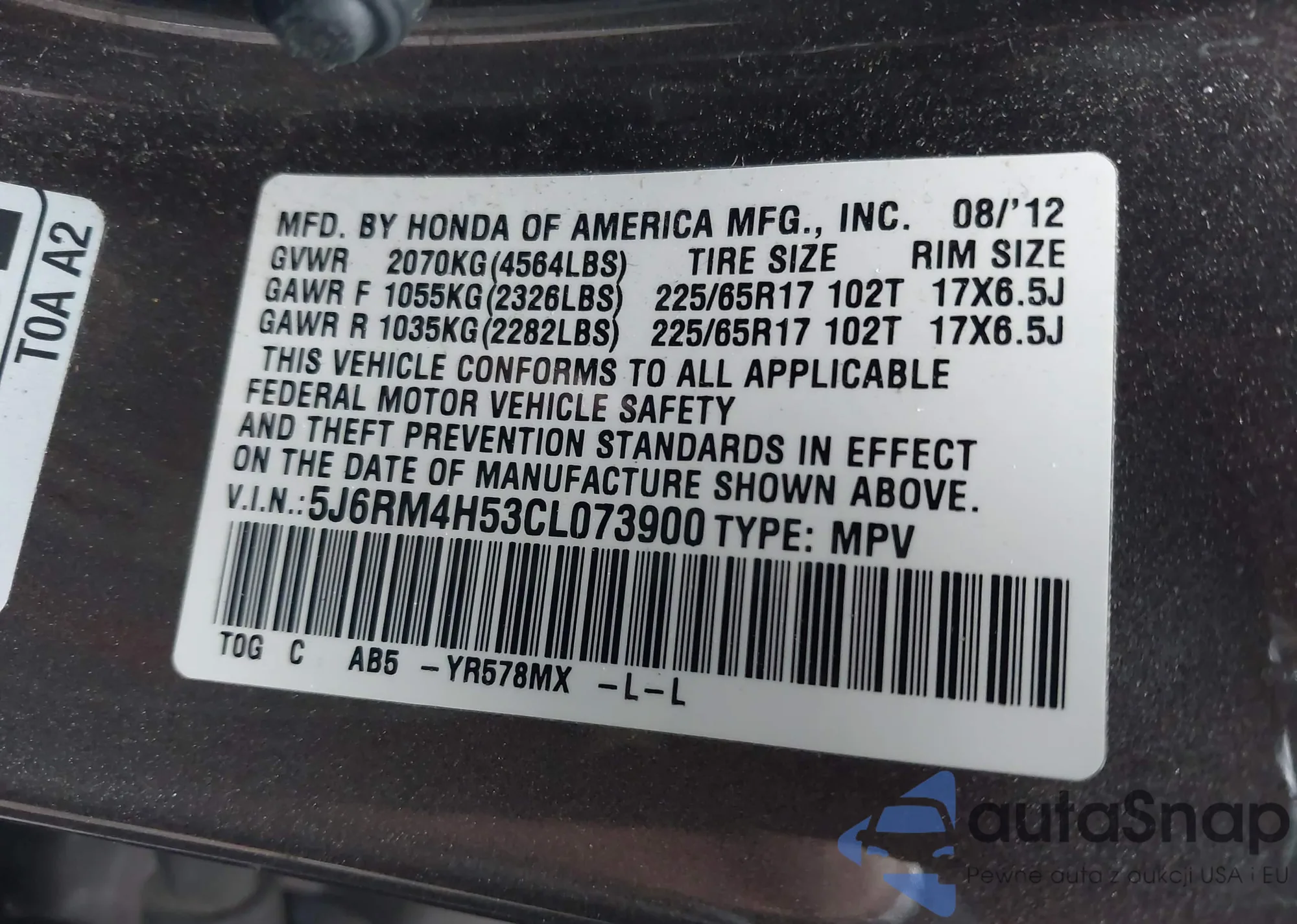 VIN: 5J6RM4H53CL073900