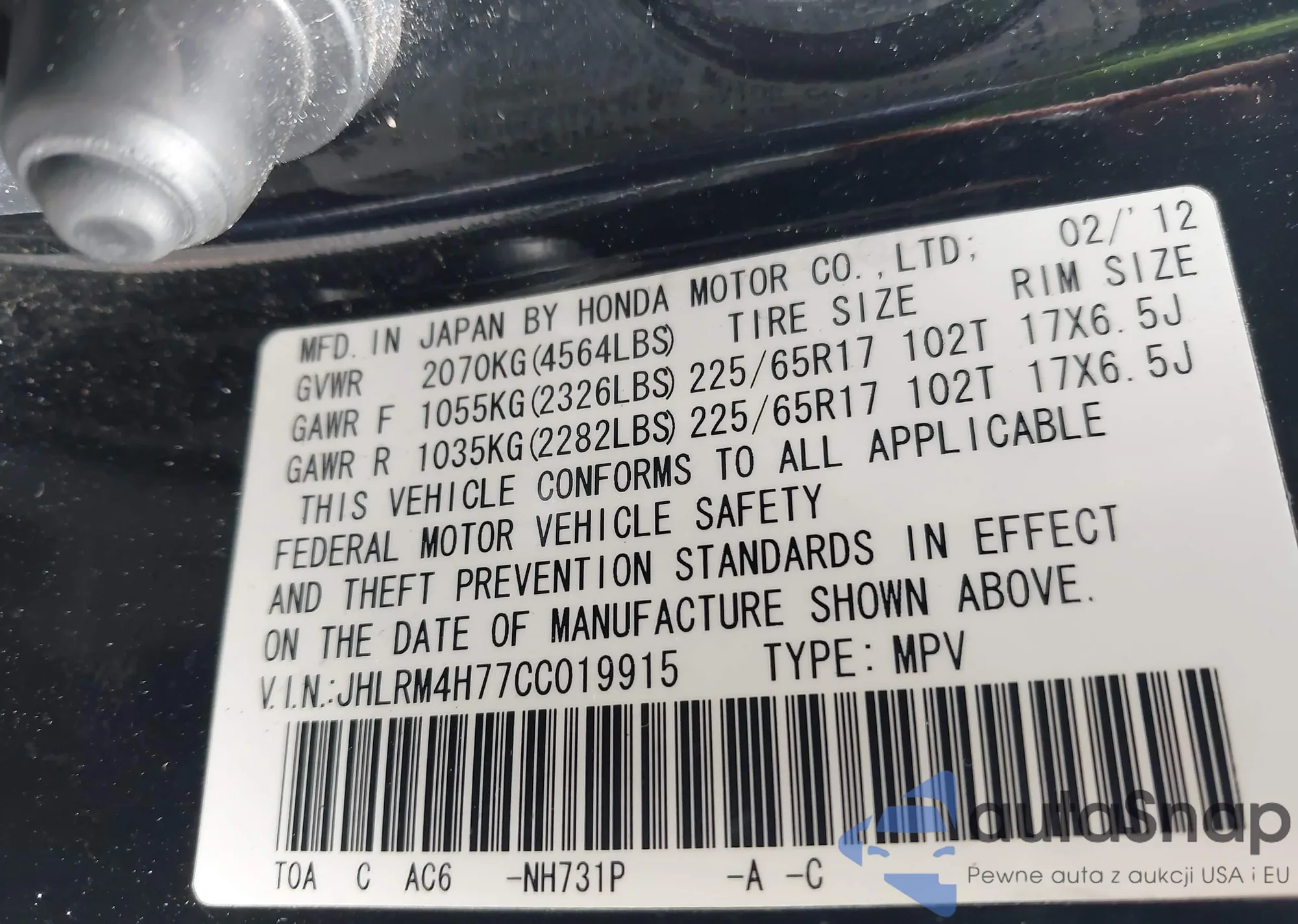 VIN: JHLRM4H77CC019915