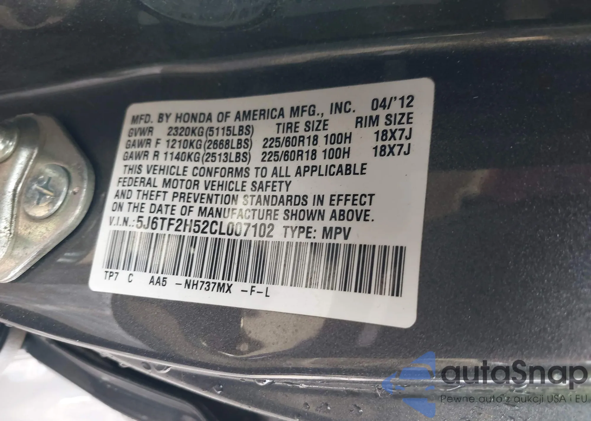 Samochód Honda Crosstour 2012 (VIN 5J6TF2H52CL007102) nie był wcześniej licytowany. Dokumenty są czyste, przebieg odpowiada lub jest niższy niż średnia rynku. Sprzedaje go firma ubezpieczeniowa – polecamy zakup. Dostawa do portu zajmie ok. 6–8 tygodni.