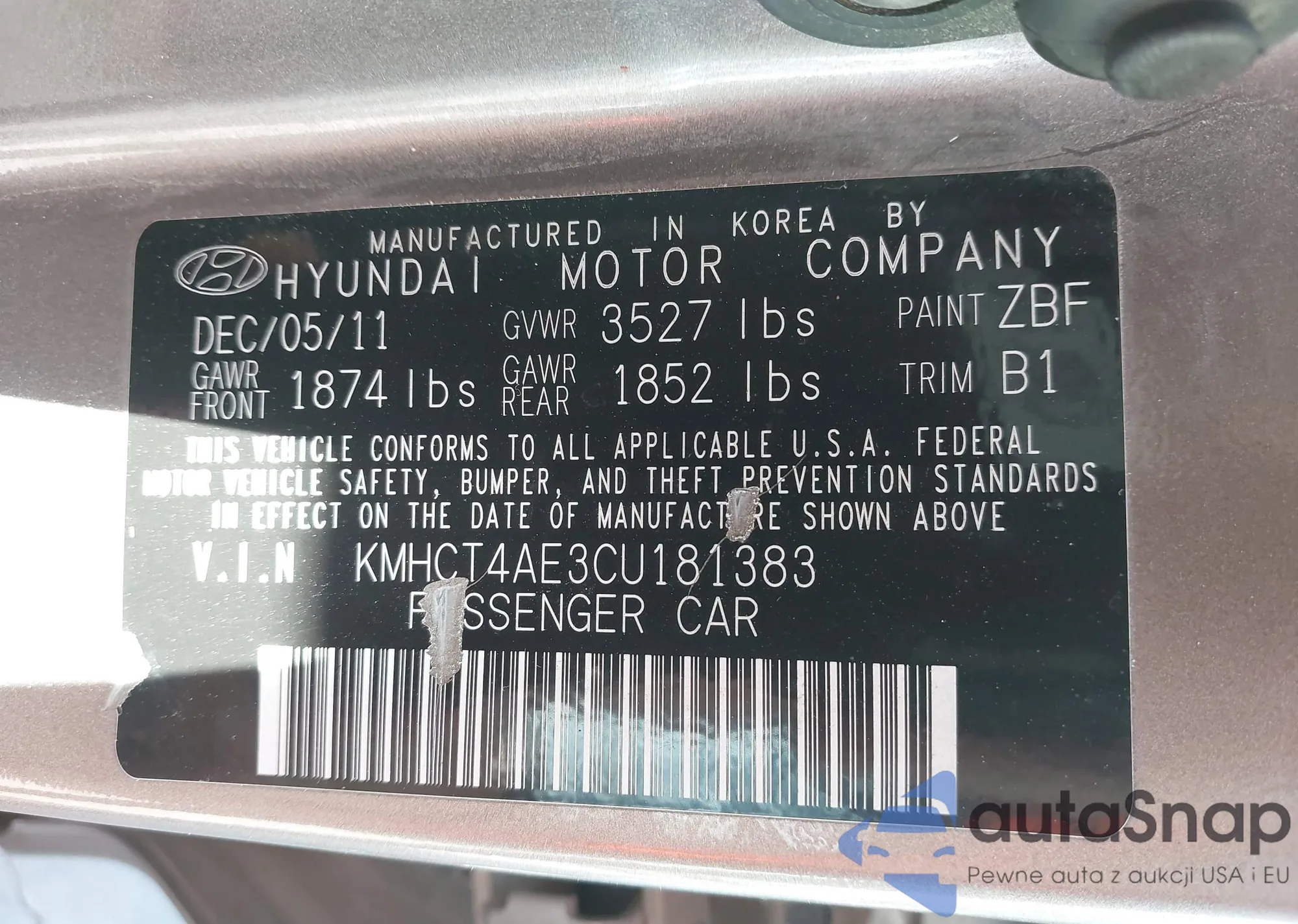 VIN: KMHCT4AE3CU181383