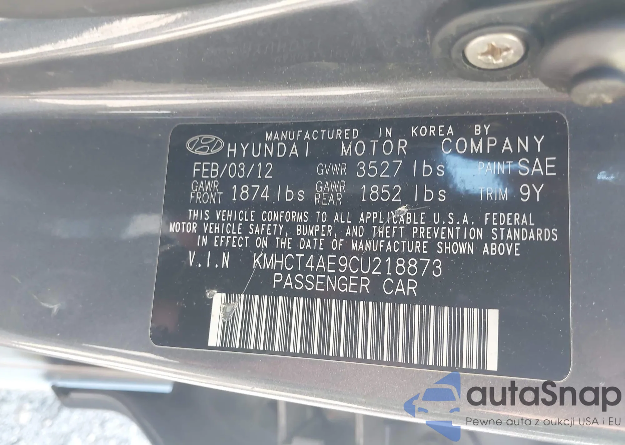 VIN: KMHCT4AE9CU218873