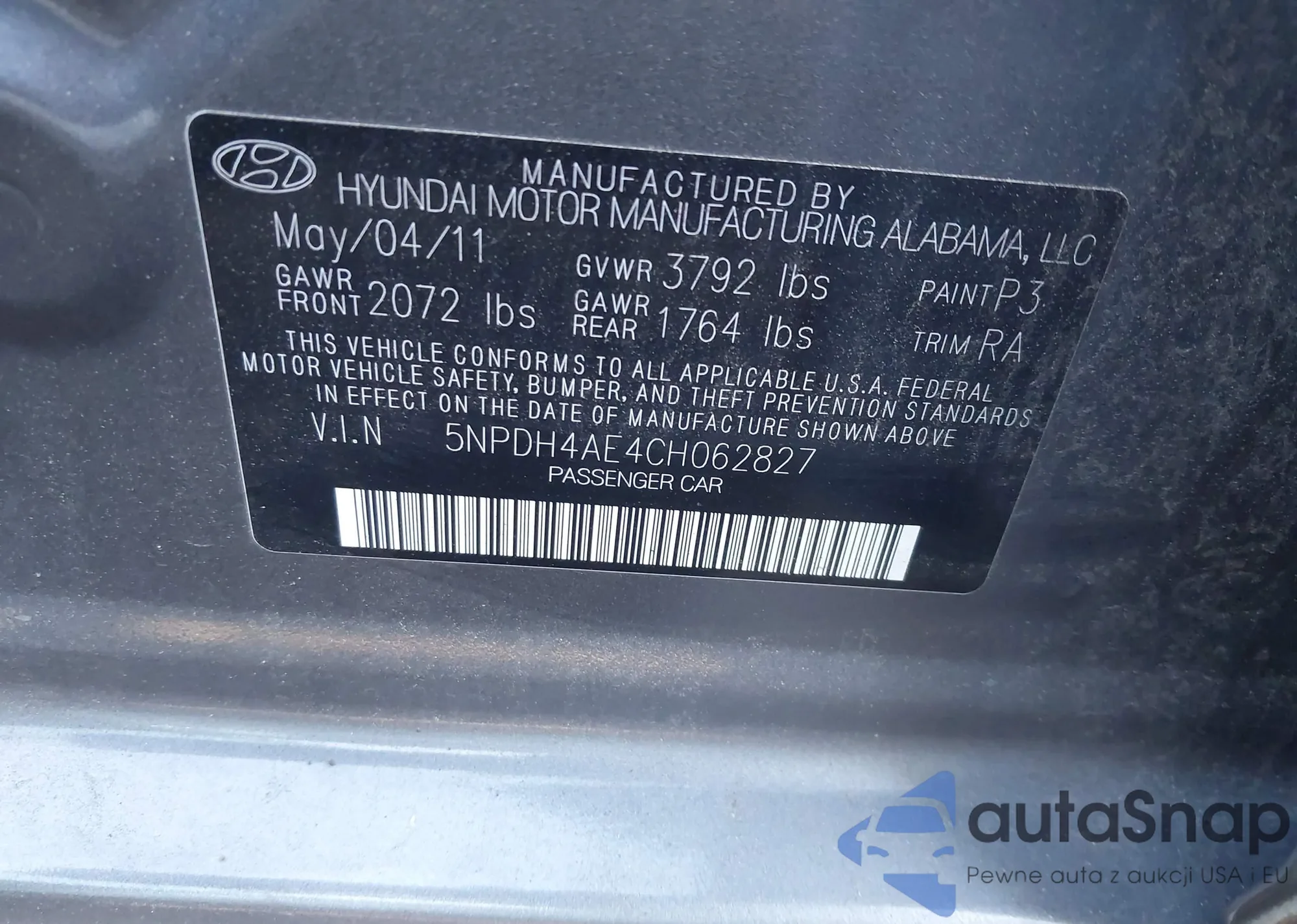 VIN: 5NPDH4AE4CH062827