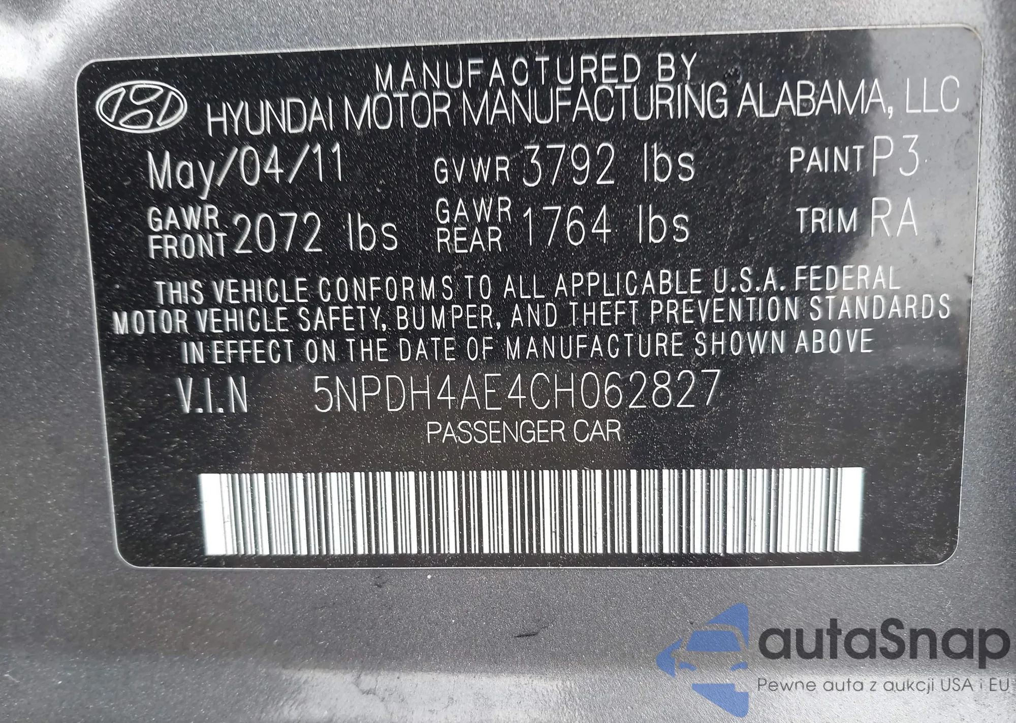 • VIN: 5NPDH4AE4CH062827