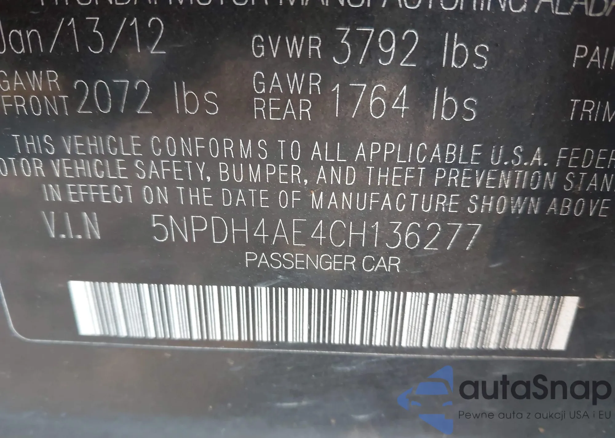 VIN: 5NPDH4AE4CH136277