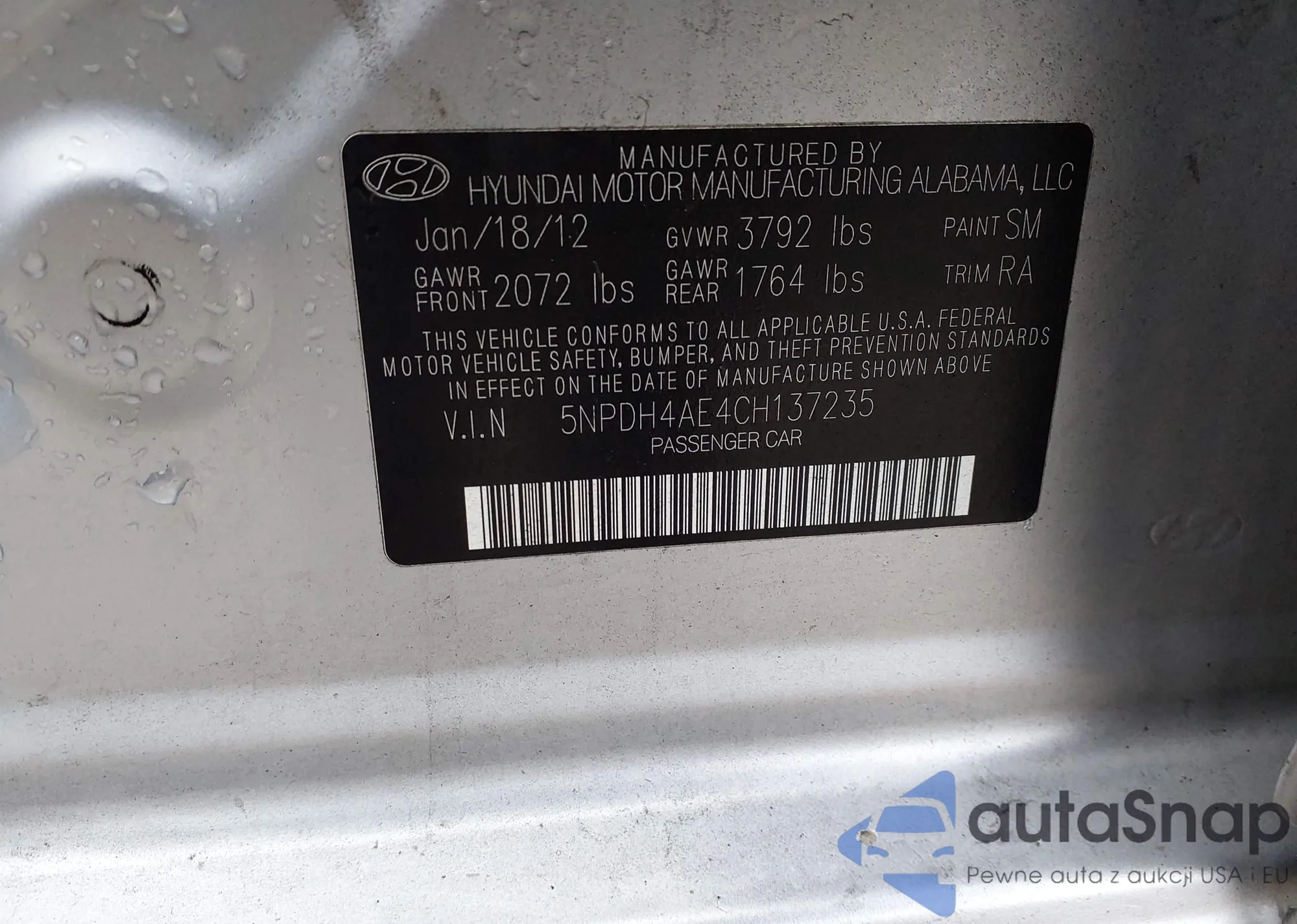 VIN: 5NPDH4AE4CH137235