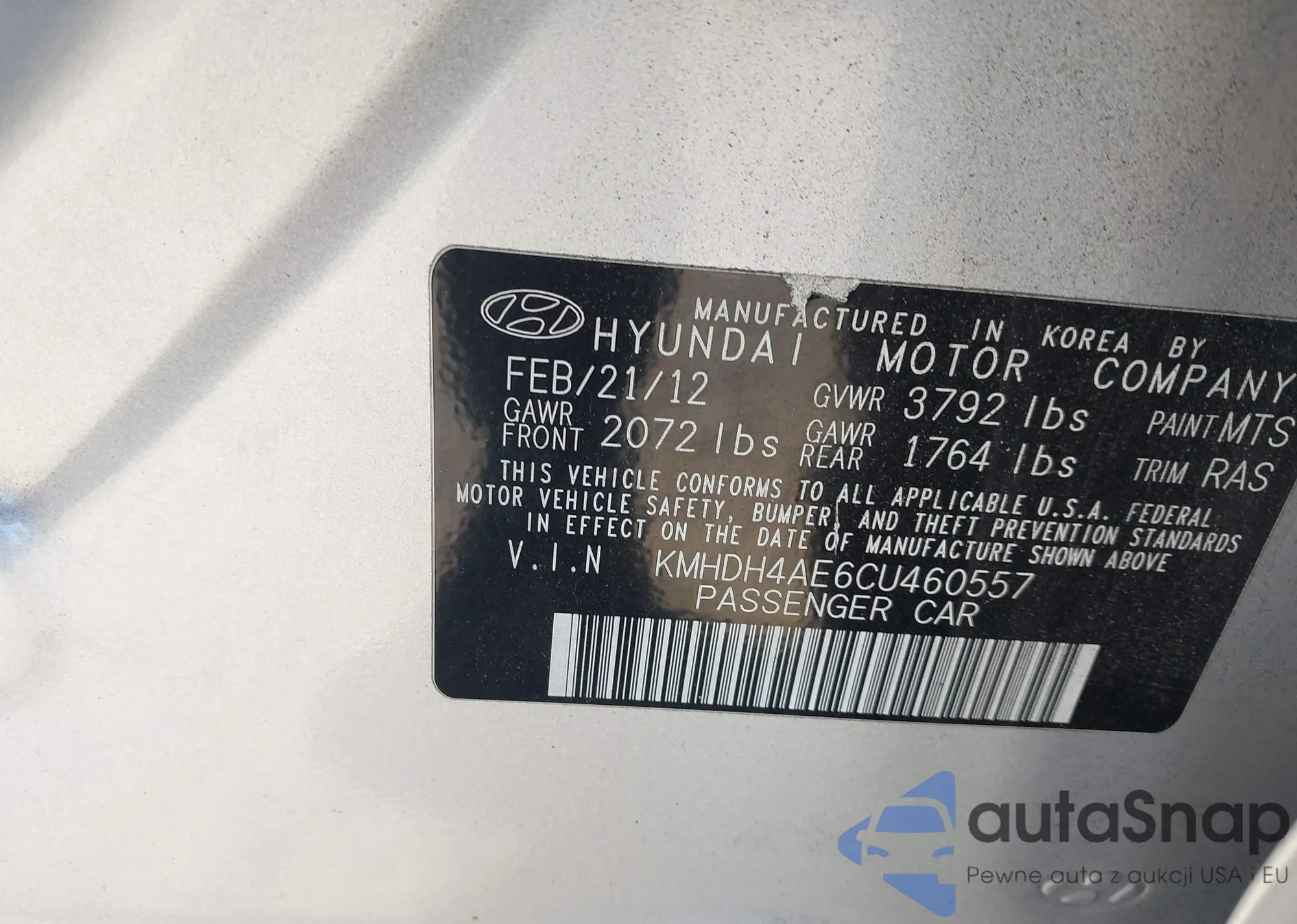 VIN: KMHDH4AE6CU460557