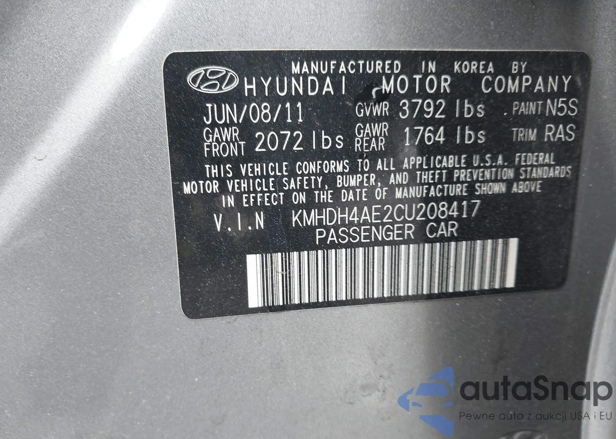 VIN: KMHDH4AE2CU208417