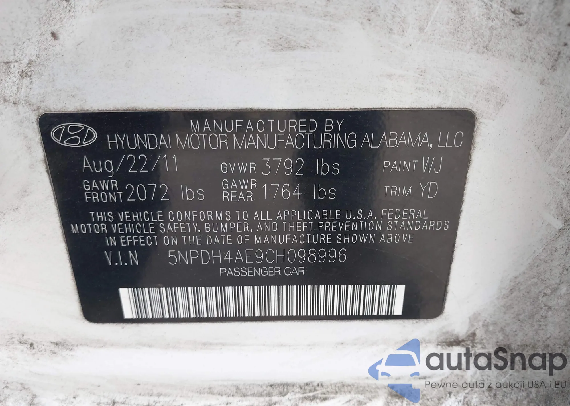 VIN: 5NPDH4AE9CH098996