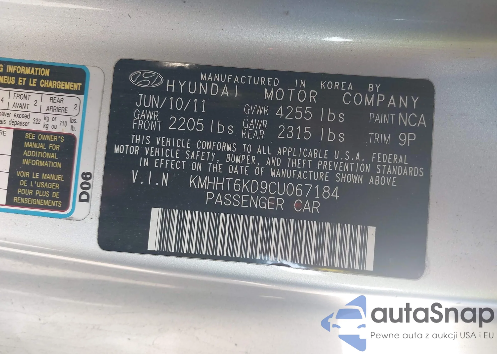 • VIN: KMHHT6KD9CU067184