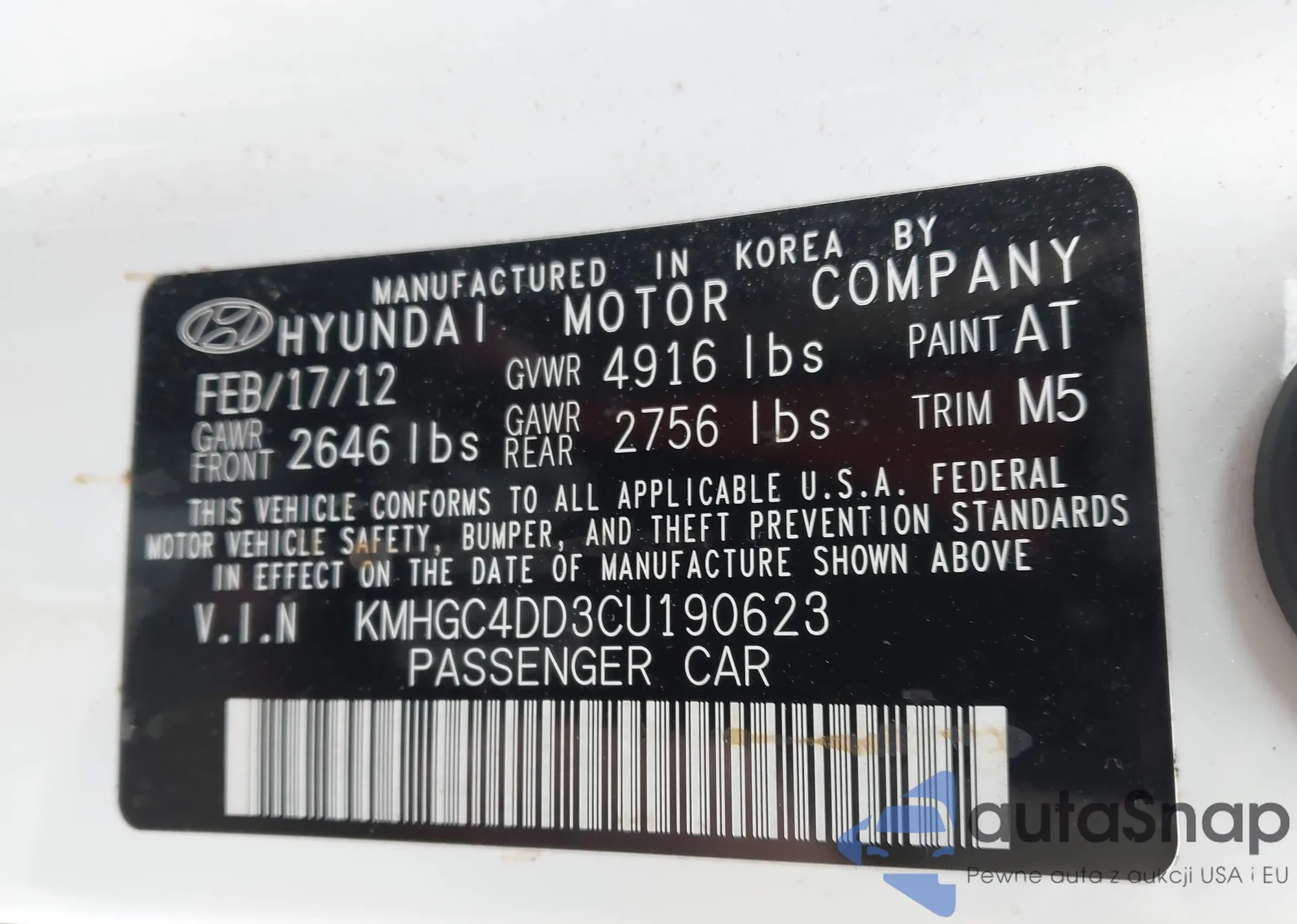 • VIN: KMHGC4DD3CU190623