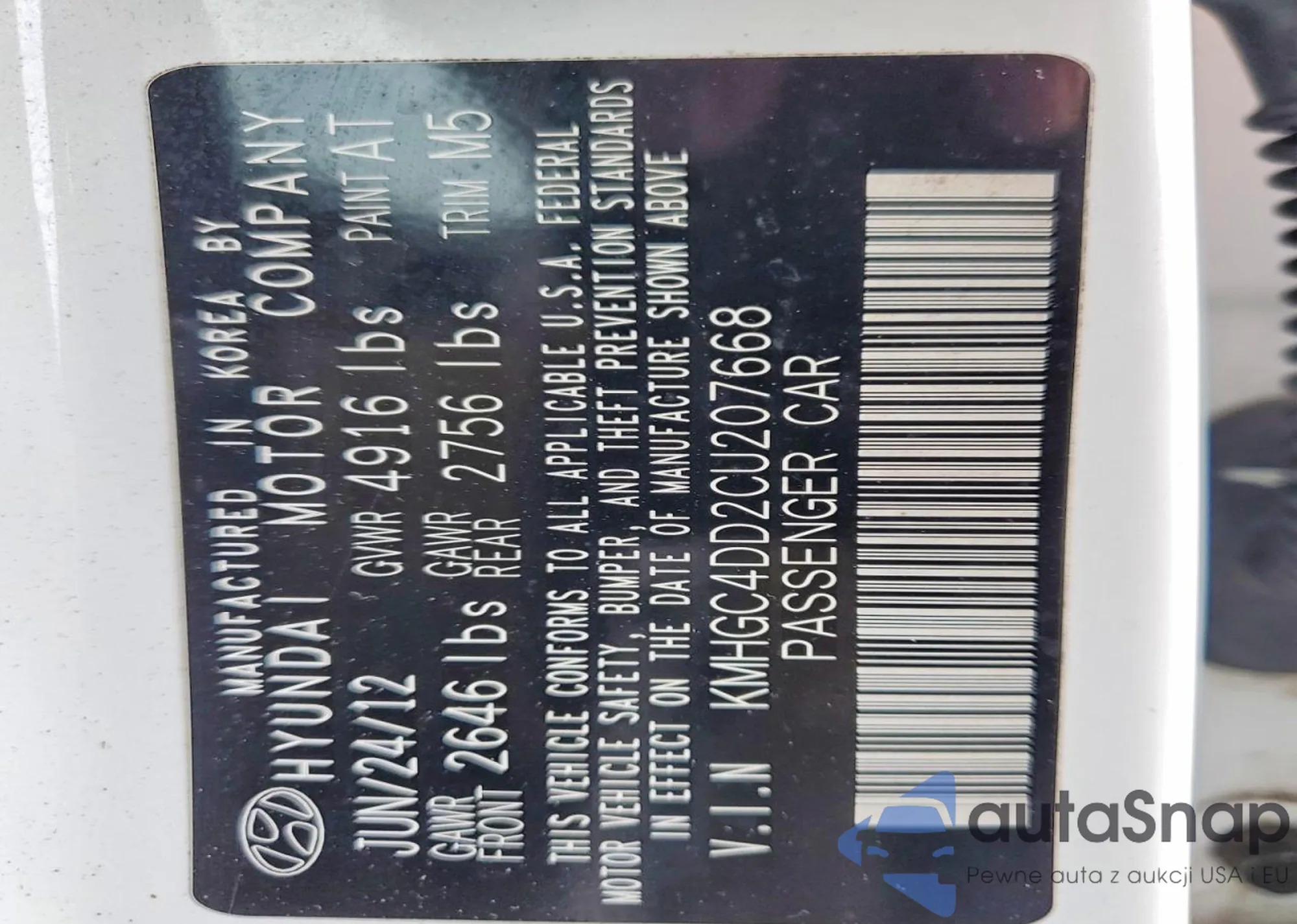 • VIN: KMHGC4DD2CU207668