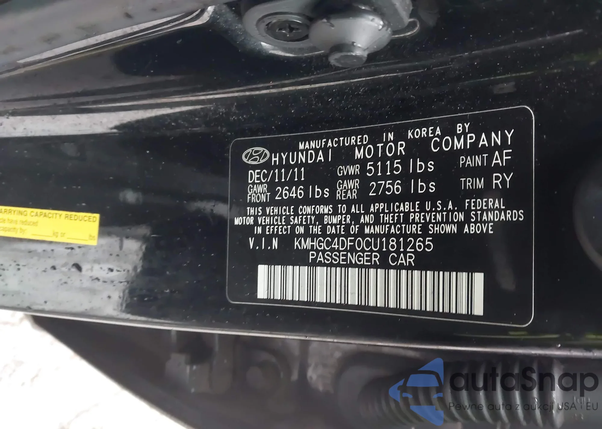 • VIN: KMHGC4DF0CU181265