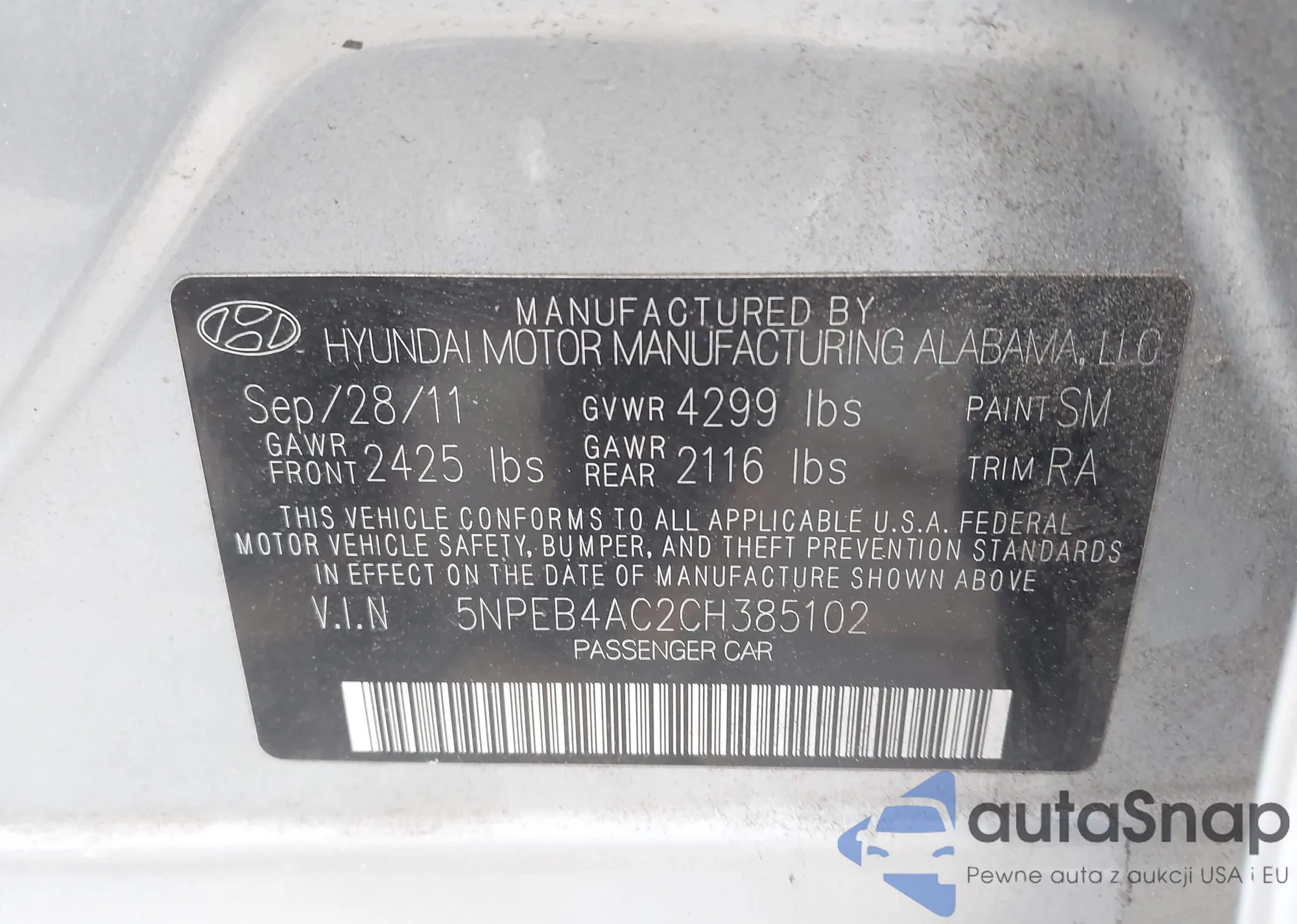 VIN: 5NPEB4AC2CH385102
