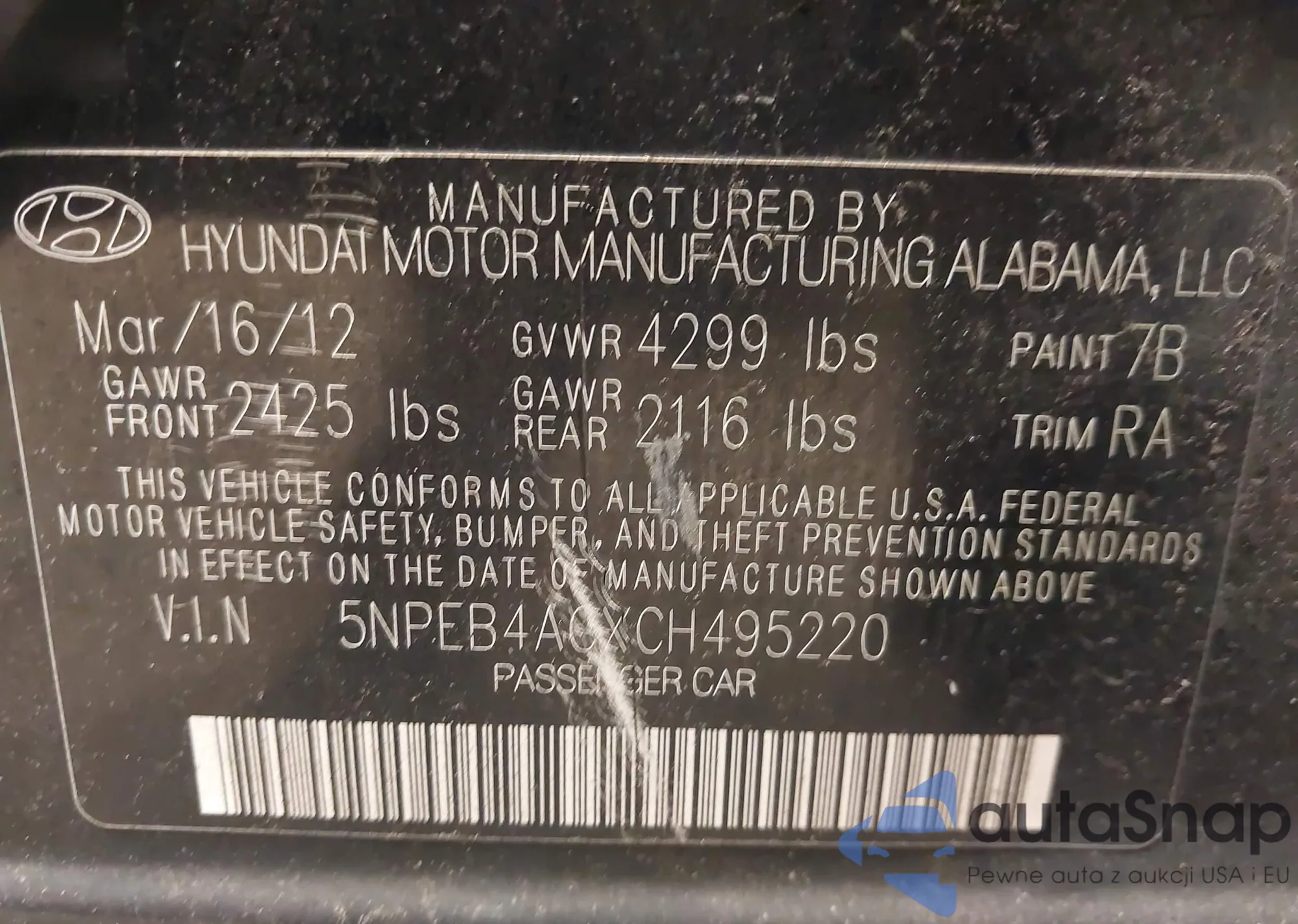 • VIN: 5NPEB4ACXCH495220