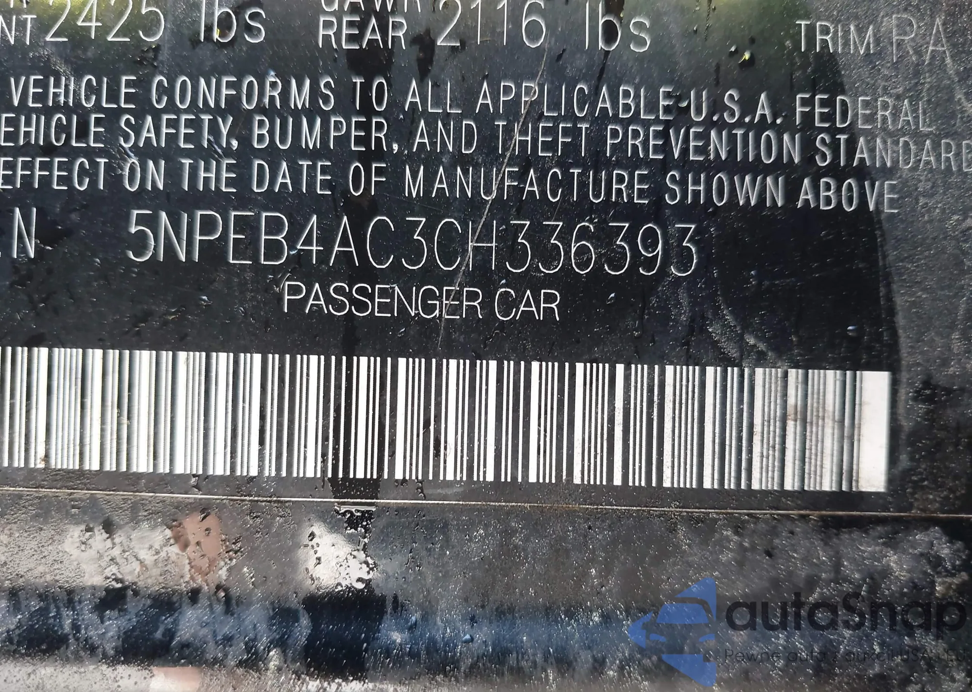 VIN: 5NPEB4AC3CH336393