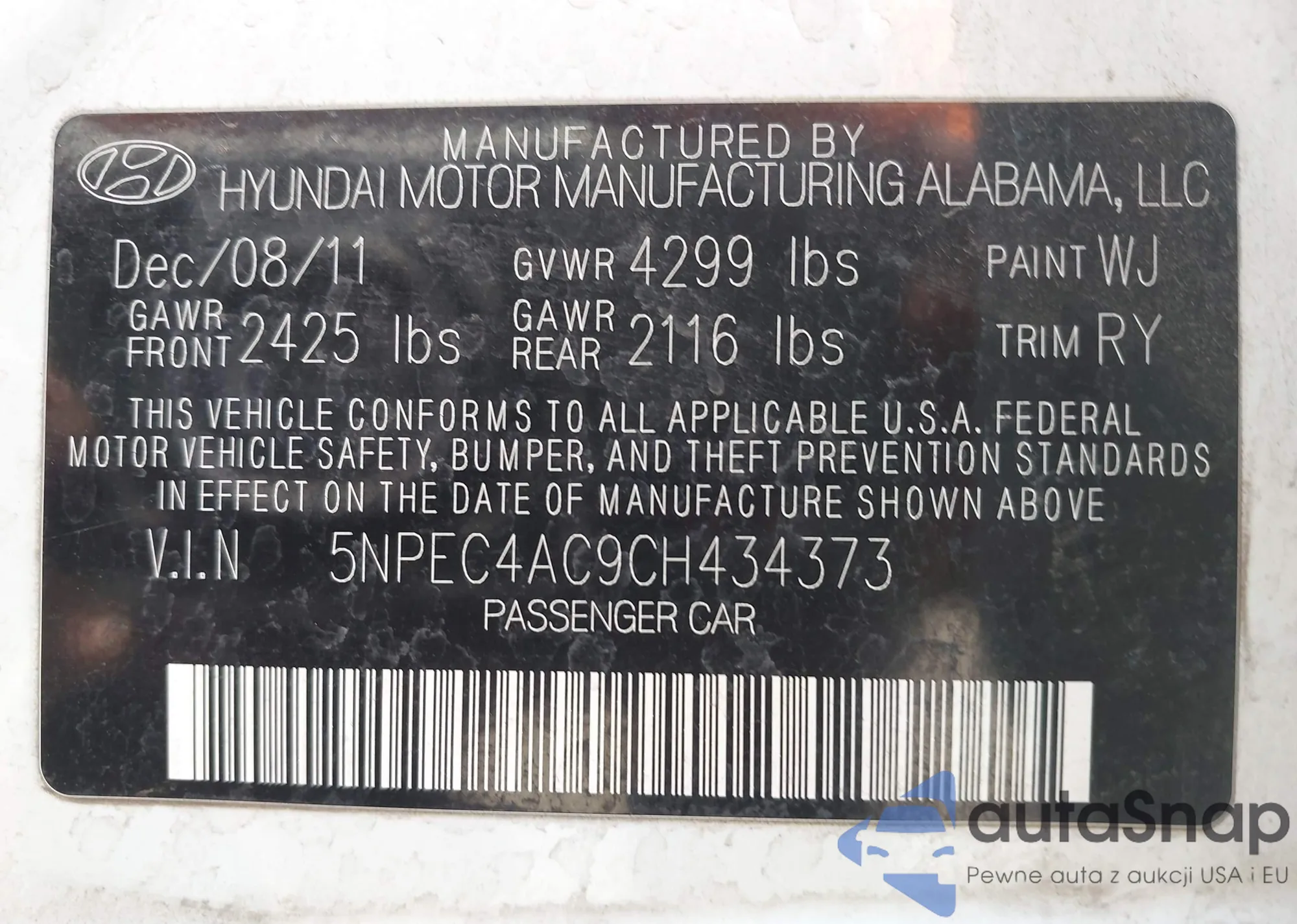 VIN: 5NPEC4AC9CH434373
