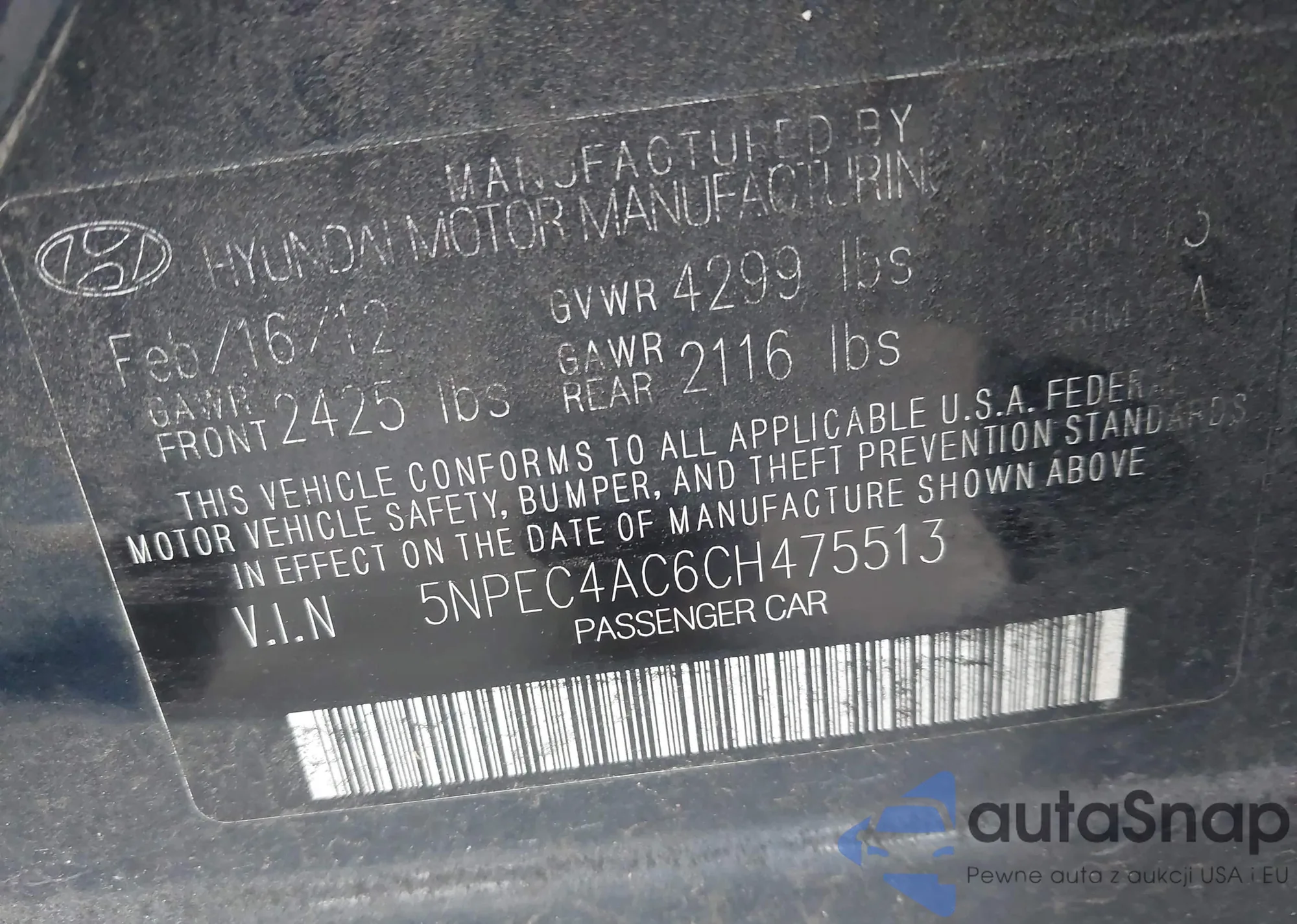 VIN: 5NPEC4AC6CH475513