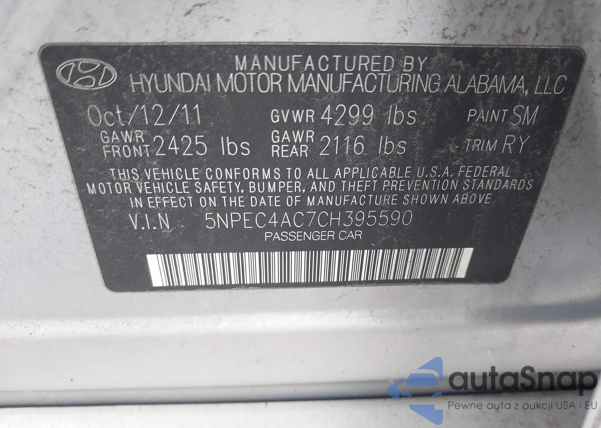 VIN: 5NPEC4AC7CH395590