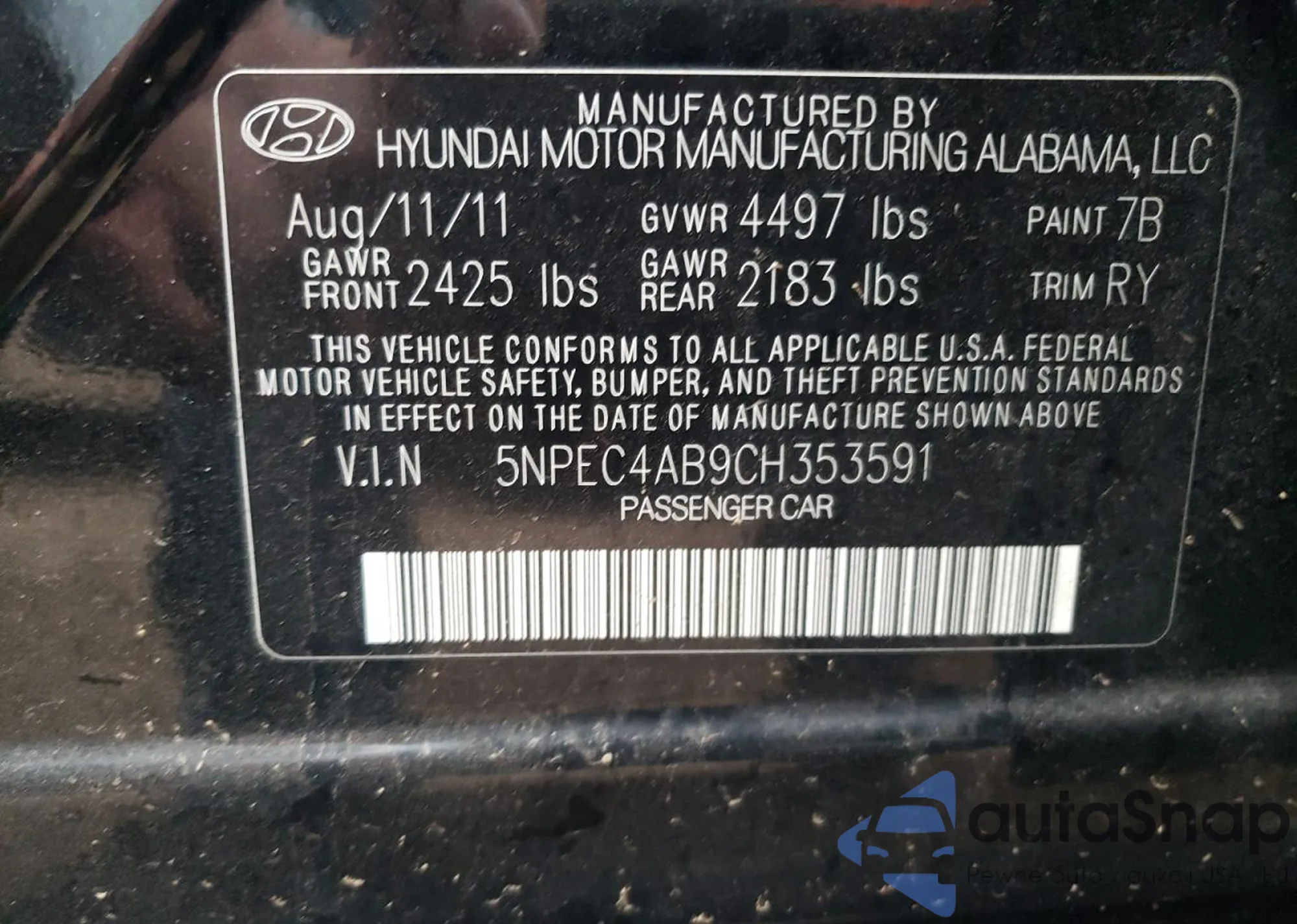 VIN: 5NPEC4AB9CH353591