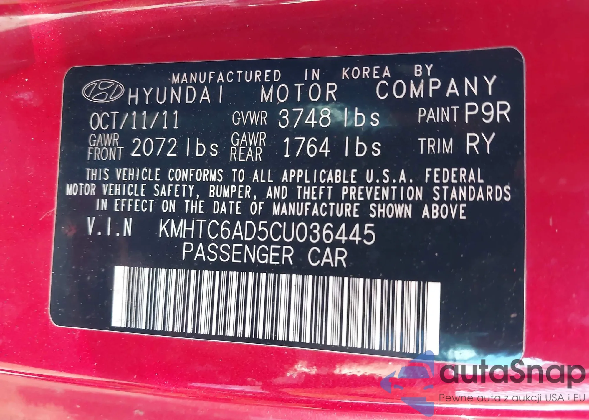 VIN: KMHTC6AD5CU036445