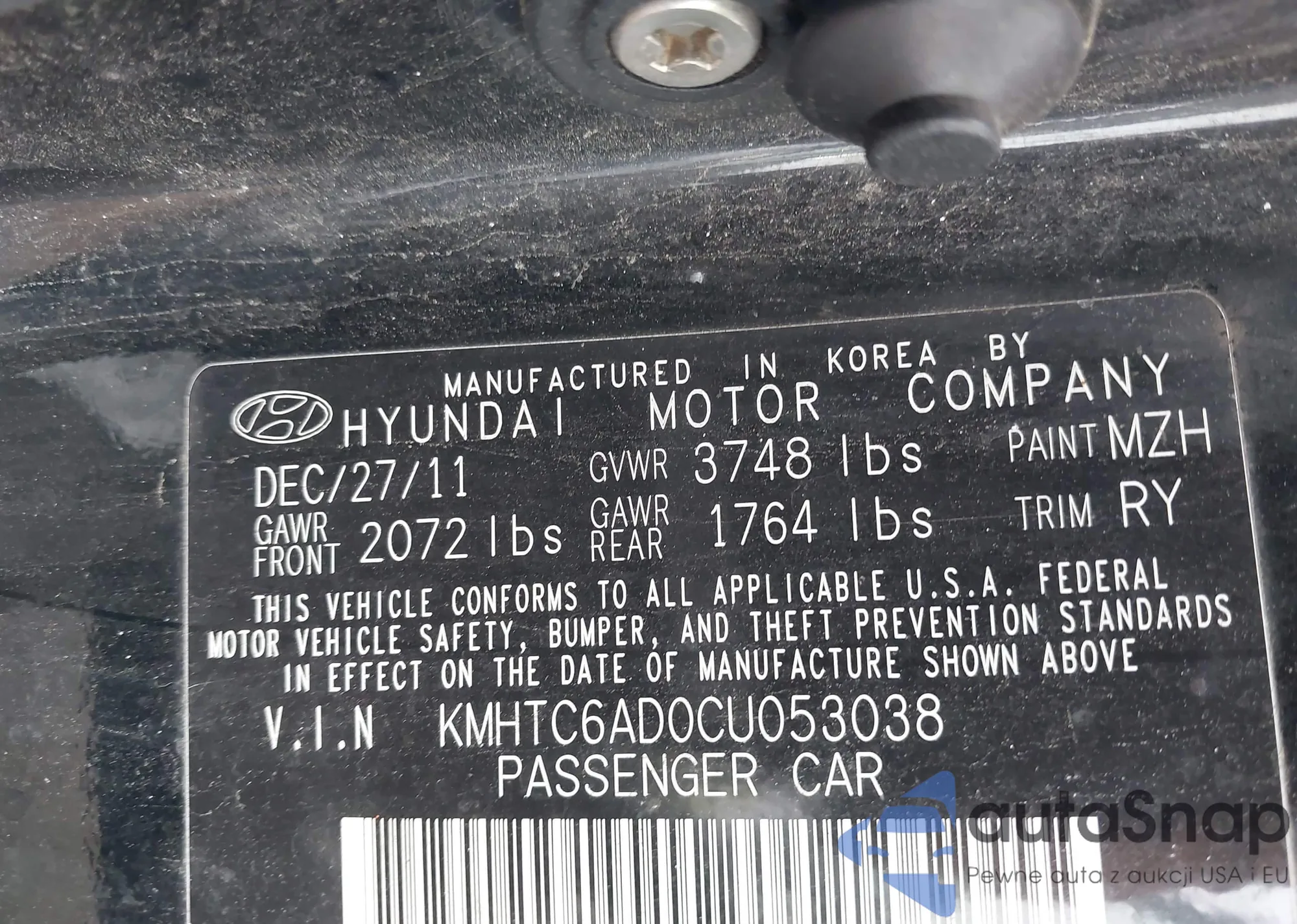 VIN: KMHTC6AD0CU053038
