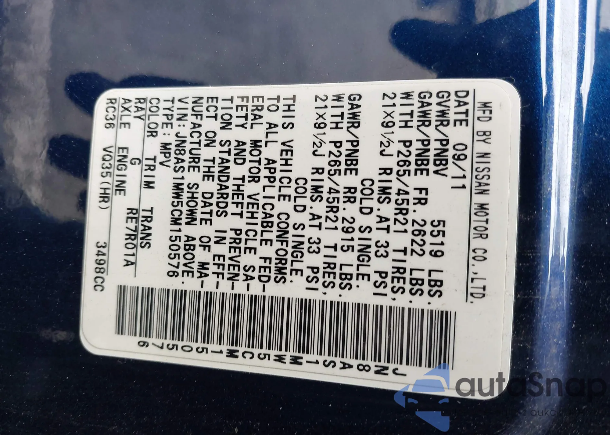 VIN: JN8AS1MW5CM150576
