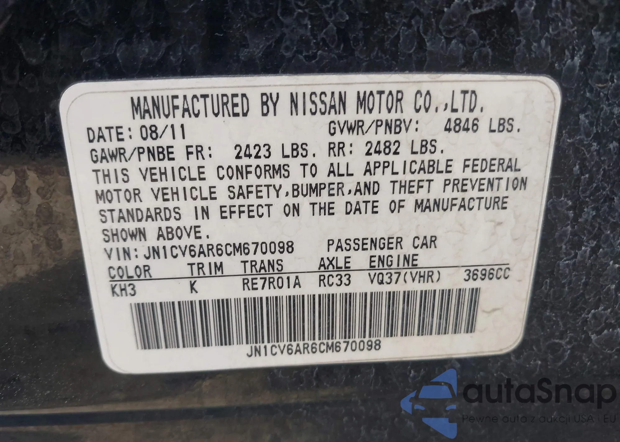 VIN: JN1CV6AR6CM670098
