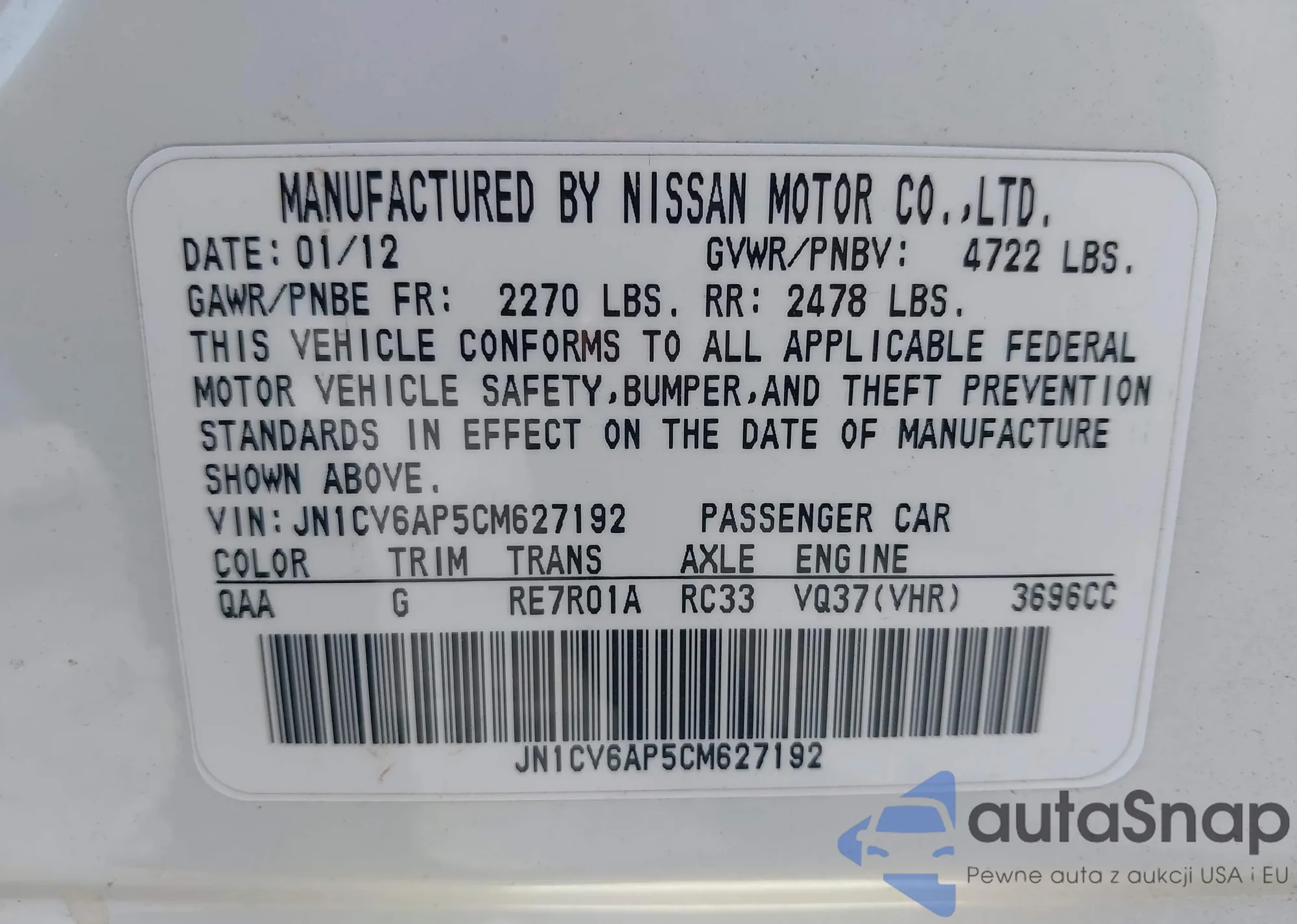 VIN: JN1CV6AP5CM627192