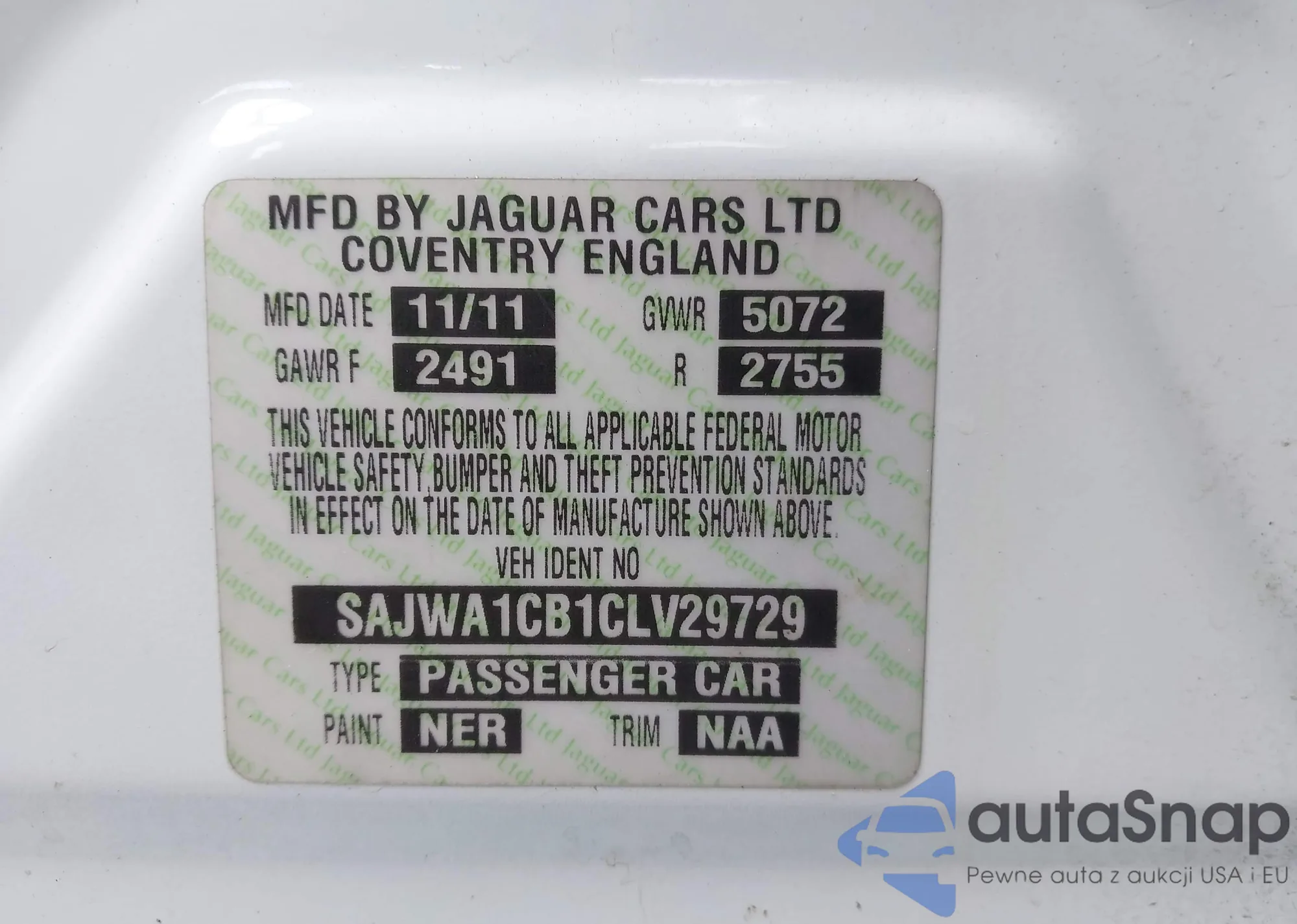 VIN: SAJWA1CB1CLV29729
