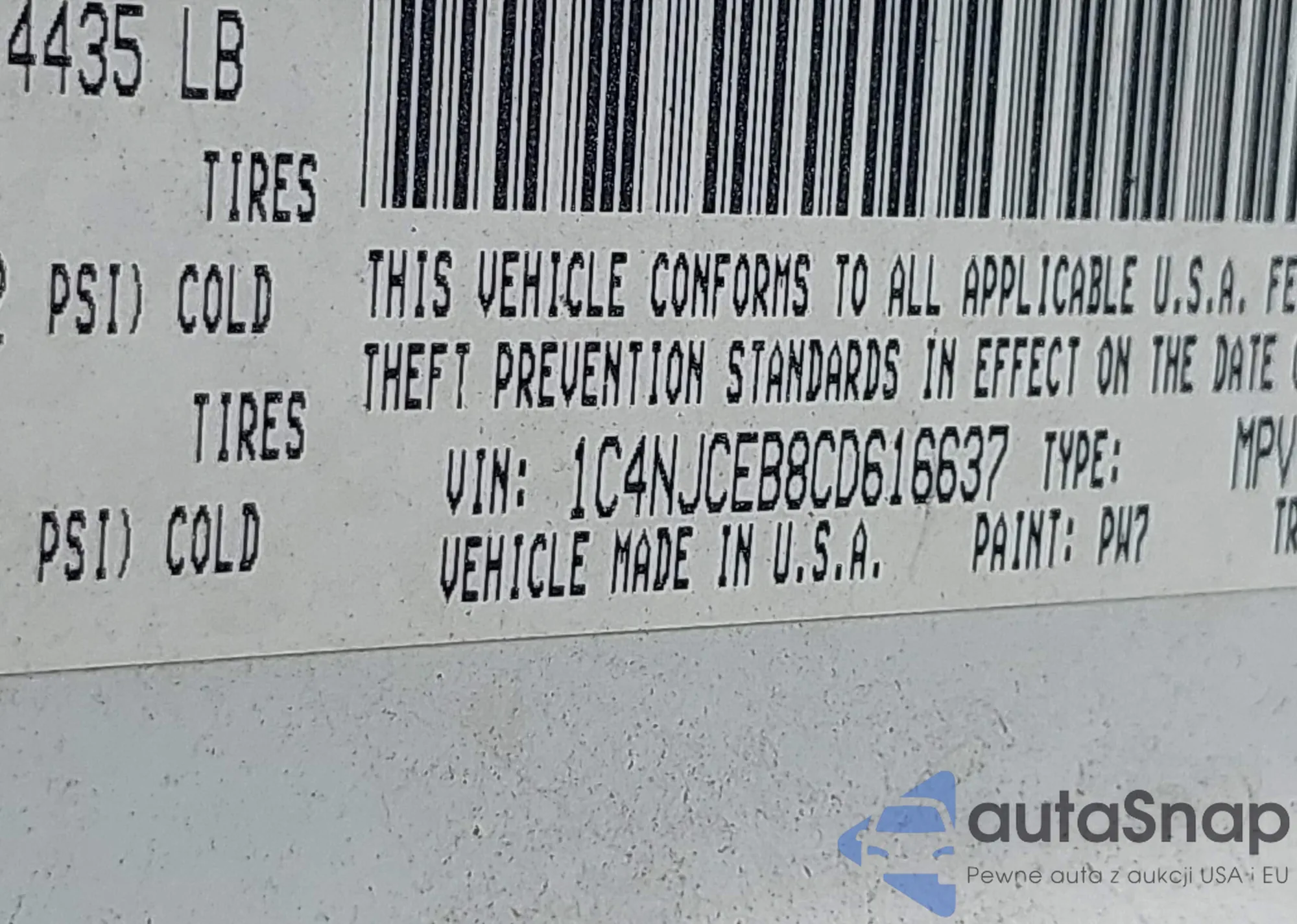 VIN: 1C4NJCEB8CD616637