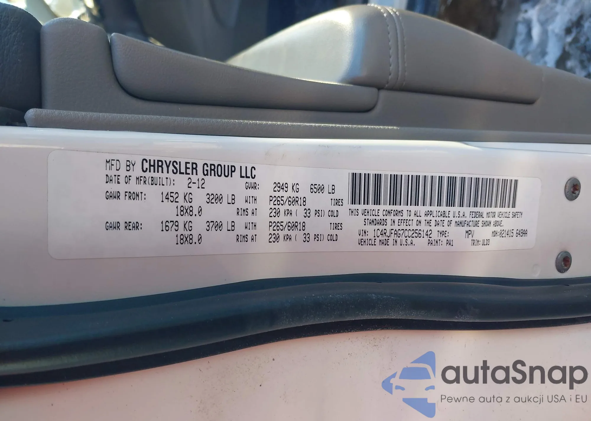 VIN: 1C4RJFAG7CC256142