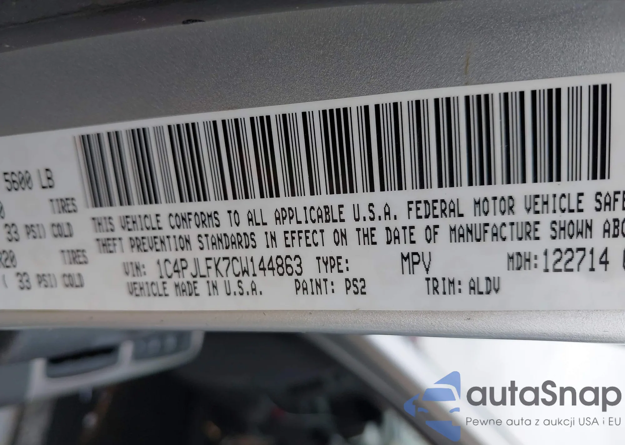 Samochód Jeep Liberty (North America) 2012 (VIN 1C4PJLFK7CW144863) ma dokumenty uniemożliwiające rejestrację. Mogą pojawić się trudności przy eksporcie i rejestracji. Skontaktuj się z ekspertami AutaSnap w celu znalezienia alternatywy.