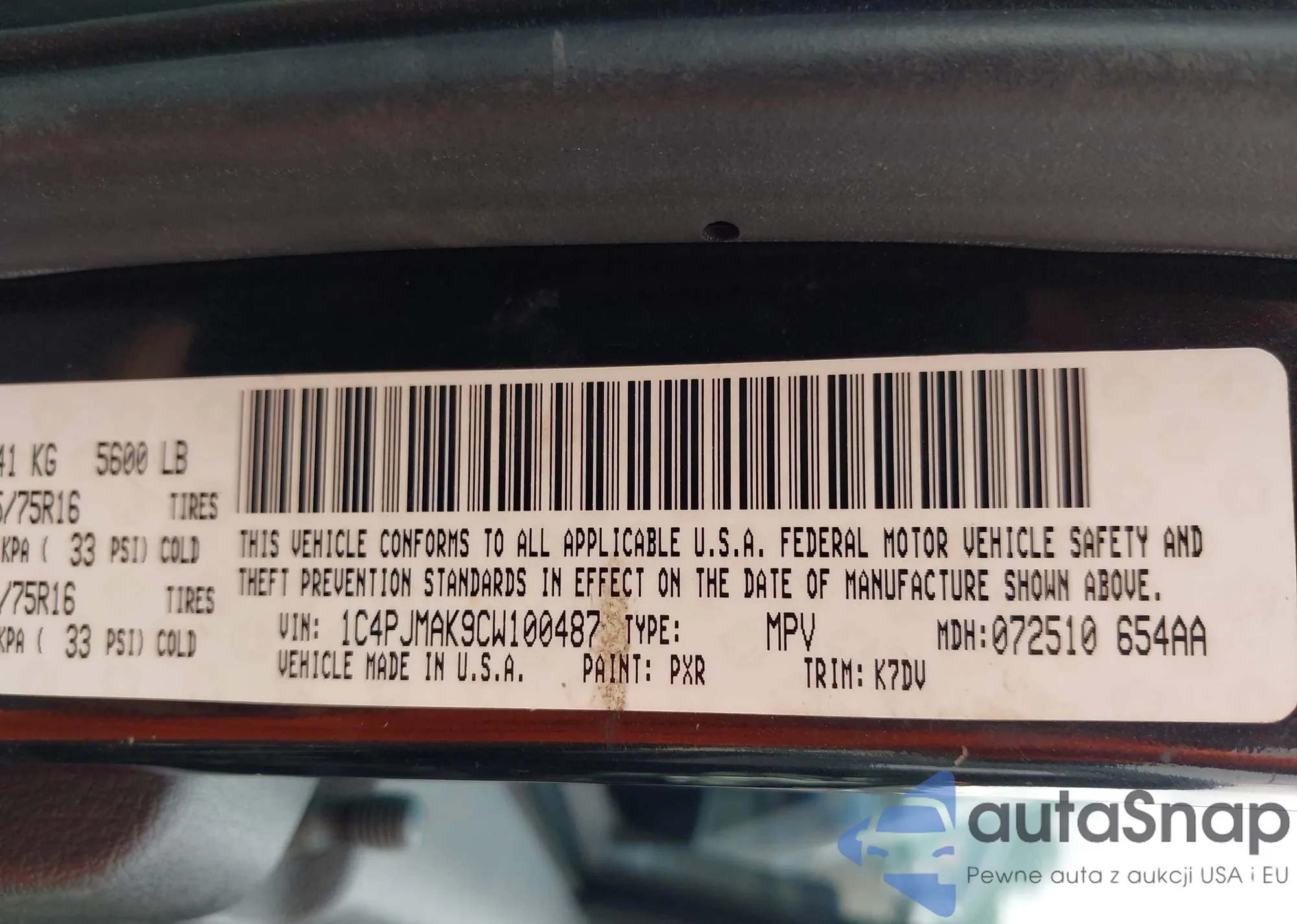 VIN: 1C4PJMAK9CW100487