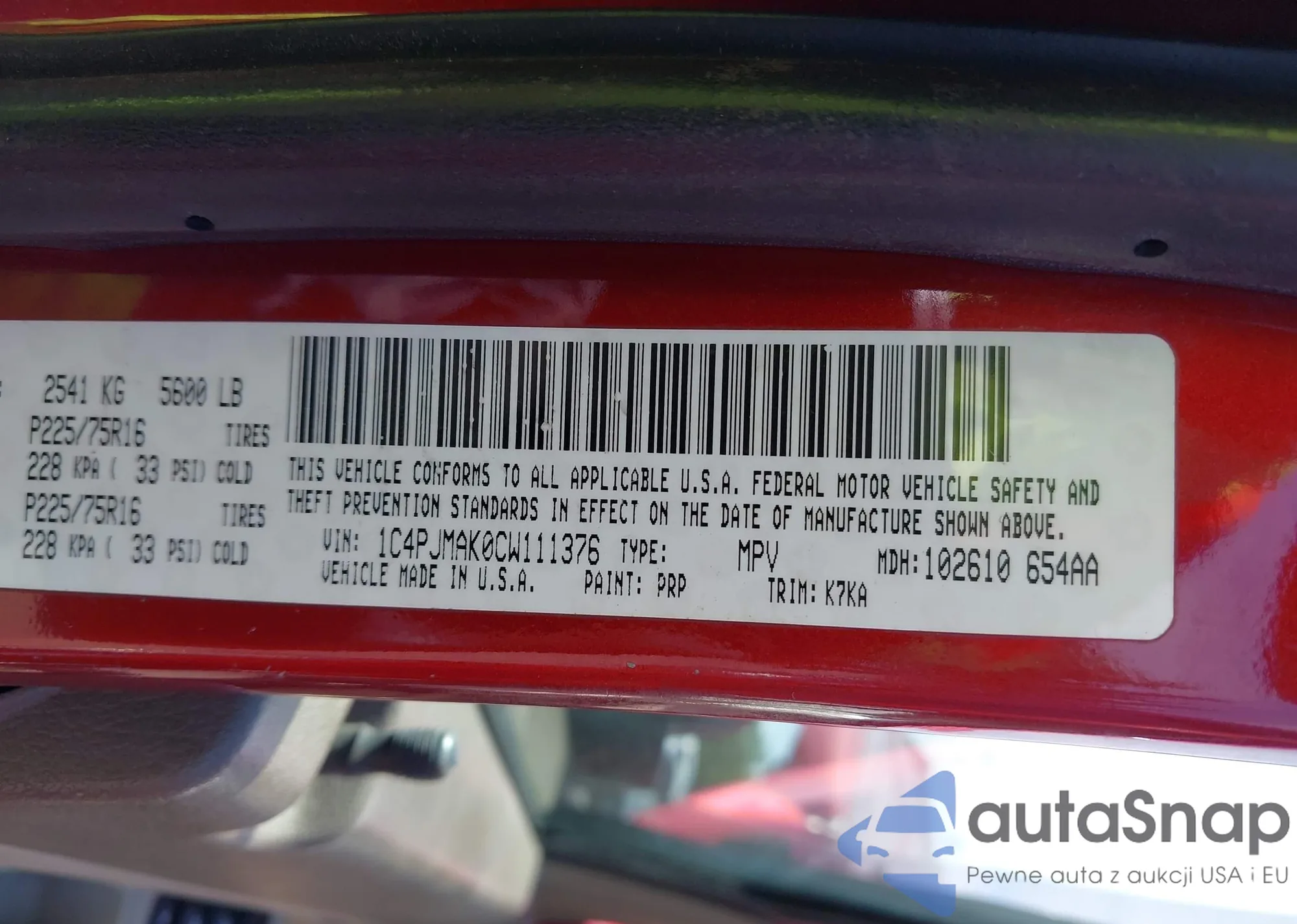VIN: 1C4PJMAK0CW111376