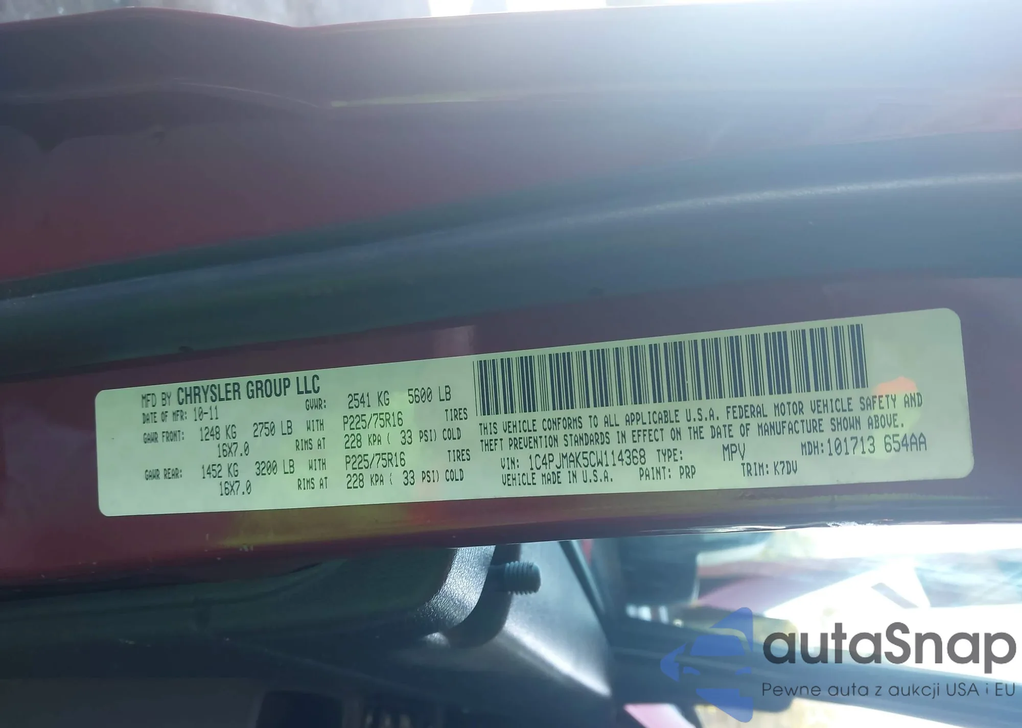 VIN: 1C4PJMAK5CW114368