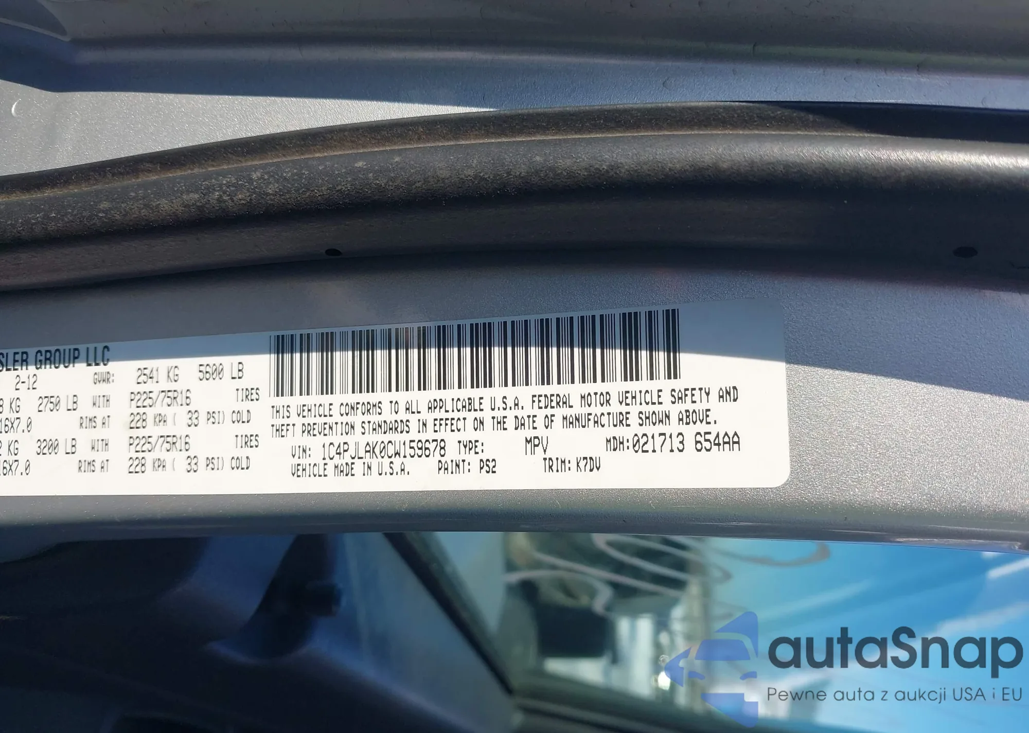 • VIN: 1C4PJLAK0CW159678