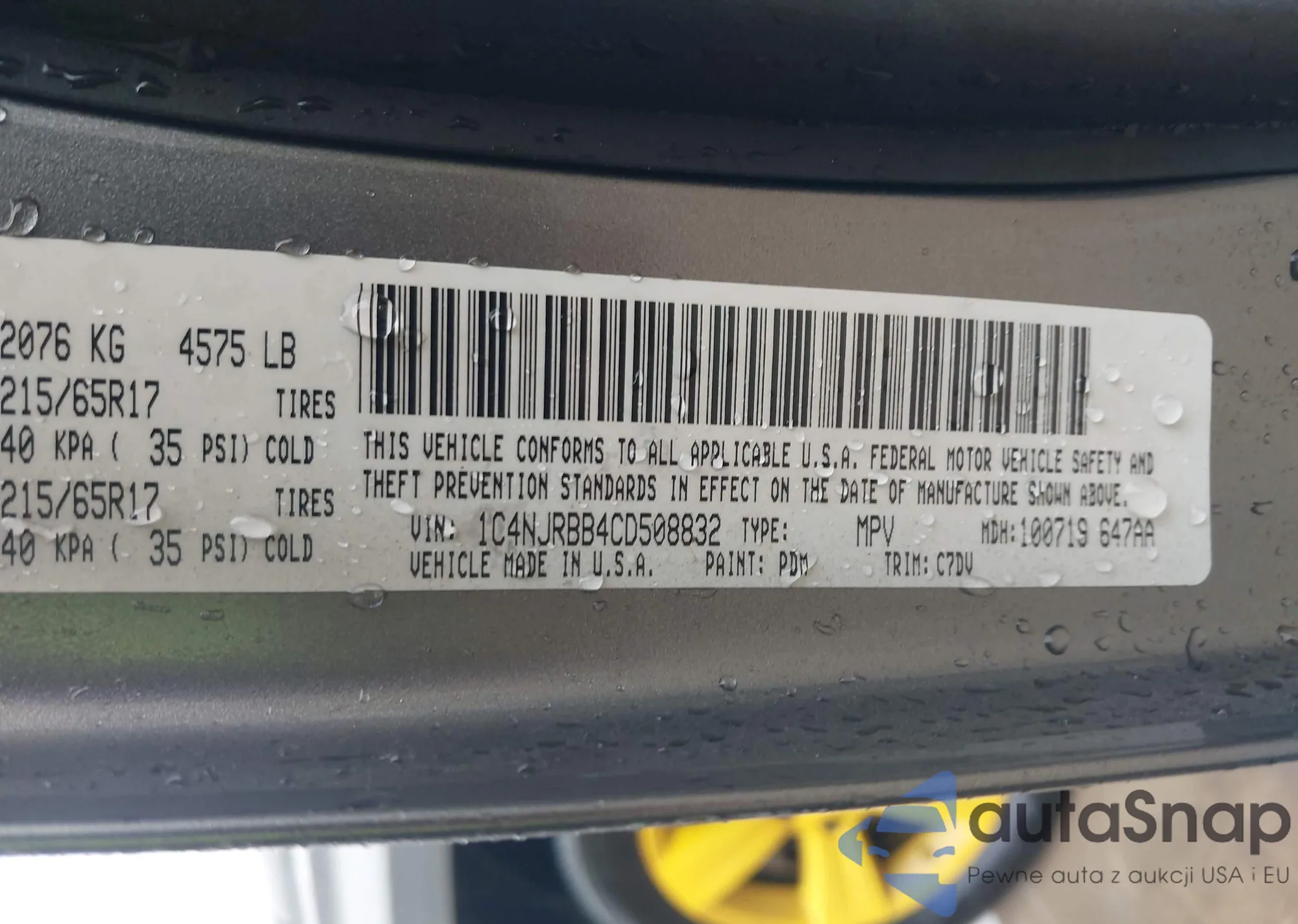 Samochód Jeep Liberty (Patriot) 2012 (VIN 1C4NJRBB4CD508832) nie był wcześniej licytowany. Dokumenty są czyste, przebieg odpowiada lub jest niższy niż średnia rynku. Sprzedaje go firma ubezpieczeniowa – polecamy zakup. Dostawa do portu zajmie ok. 6–8 tygodni.